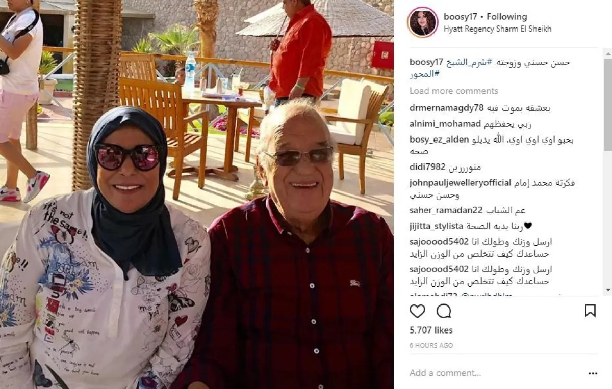 الفنان حسن حسني سمح أخيرًا بظهور شريكة حياته معه في مناسبة فنية، ووافق على التقاط الصور لها، لمناسبة تكريمه ضمن فعاليات مهرجان شرم الشيخ السينمائي الدولي.