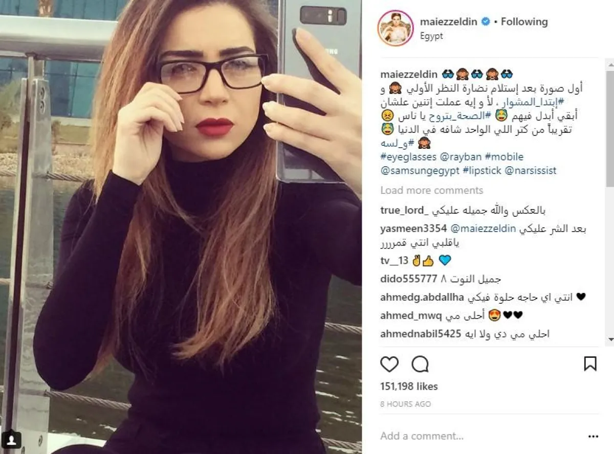 الفنانة مي عز الدين، سخرت من أول صورة لها بالنظارة الطبية عبر صفحتها بموقع انستقرام، وعلقت قائلة: أول صورة بعد استلام نظارة النظر الأولى.. وابتدا المشوار، لأ وإيه عملت اتنين علشان أبقى أبدّل فيهم.