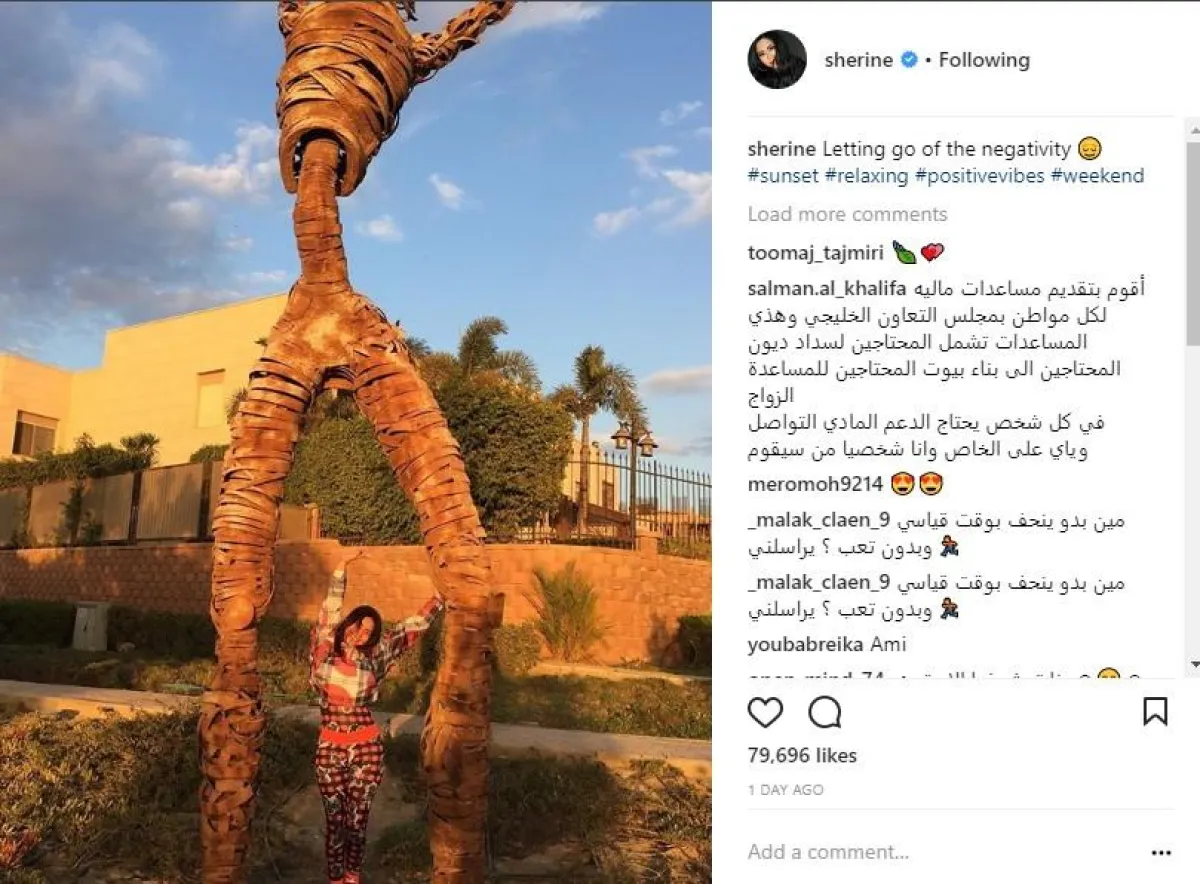 الفنانة شيرين عبد الوهاب واصلت استخدام حسابها على موقع انستقرام لتأكيد وجودها داخل مصر بطريقة غير مباشرة، ونشرت صورة جديدة لها وهي تقف أمام قصر ضخم على طريق مصر إسكندرية الصحراوي.
