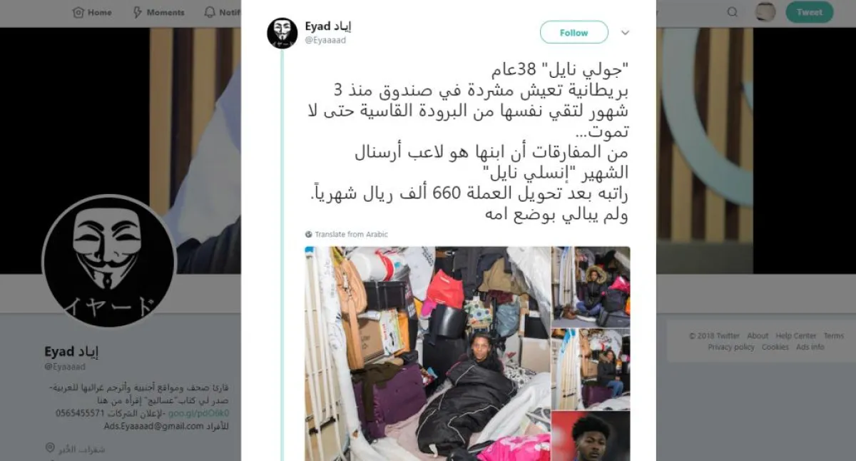 وفي التفاصيل، تعيش البريطانية جولي نايل، 38عاماً، مشردة في صندوق منذ ثلاثة أشهر لتقي نفسها من البرد الشديد على الرغم من أن ولدها يتلقى الملايين سنوياً، حيث يبلغ راتبه الشهري ما يقارب 660 ألف ريال سعودي، لكنه لا يبالي بوضع والدته المشردة!