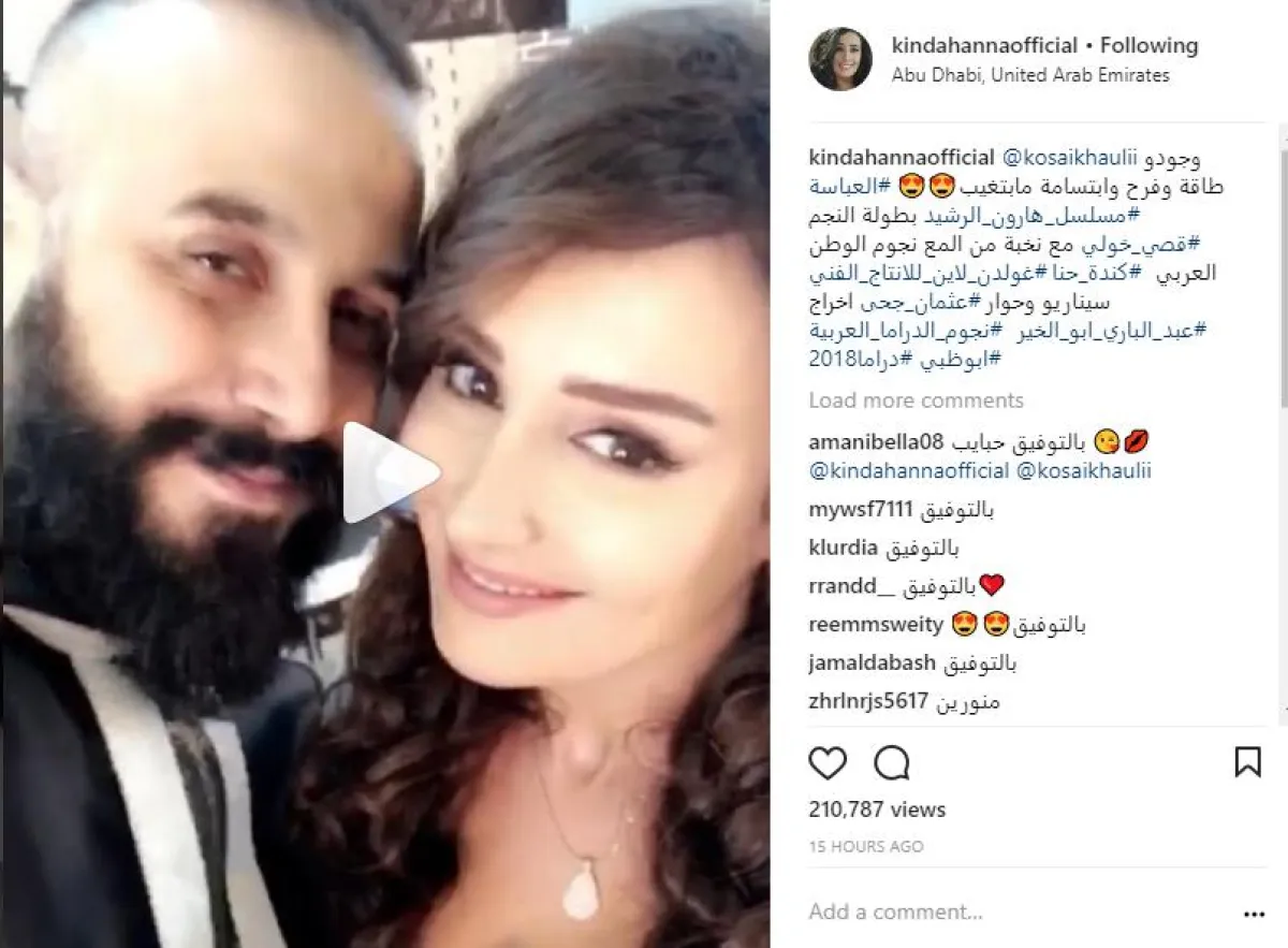 الفنانة السورية كندة حنا، نشرت عبر صفحتها الشخصية بموقع انستقرام، فيديو يجمعها بمواطنها قصي خولي، من كواليس مسلسلهما الجديد "الرشيد"، وعلقت "كندة" على الفيديو قائلة: وجوده طاقة وفرح وابتسامة ما بتغيب، شخصية العبّاسة بمسلسل هارون الرشيد، بطولة النجم قصي خولي مع نخبة من ألمع نجوم الوطن العربي.