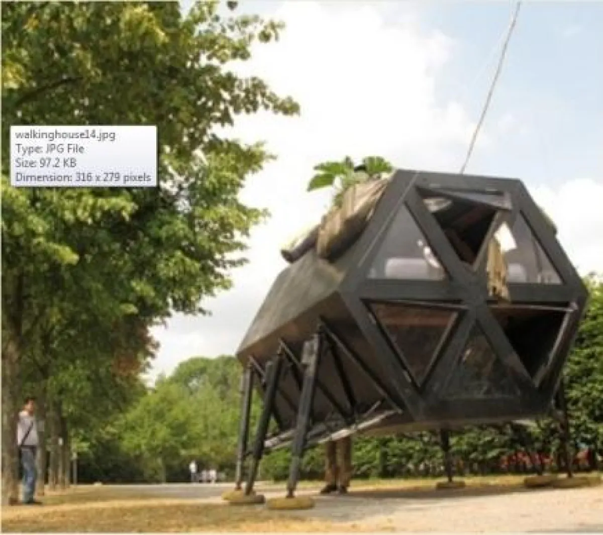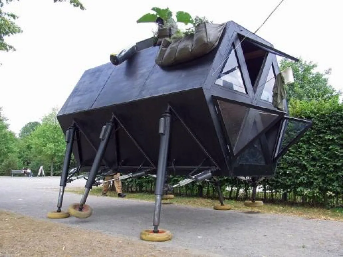 على غرار فكرة "الكرنفال في الشارع" التي عرضت في إحدى الأفلام المصرية القديمة كأحد الحلول للتغلب على أزمات السكن من حيت الازدحام وارتفاع التكلفة.. توصل أحد المبتكرين إلى منزل مُخترع حديثًا يرتكز على 6 أرجل هيدروليكية بمساحة صغيرة. ويستمد طاقته من الشمس، ويتم تصنيعه من الصلب والرقائق الخشبية.. وهذا العش صاحب الأرجل والست بتصميمه العصري الفريد يحتوي على مطبخ صغير وحمام مضغوط وسرير مريح ونظام لتجميع مياه المطر.. ورغم بساطة هذا المنزل إلا أنه لا يخلو شبر منه من بصمة تكنولوجية فريدة تجعل السكنى فيه تجربة فريدة لمن يجرؤ على كسر حواجز النمطية والتقليدية، حيث يستطيع الساكن فيه أن يتحكم في حركته عن طريق شاشة تعمل باللمس تُظهر على إعداداته، ويُتيح هذا المنزل المتنقل لقاطنيه حياة هادئة مع الاستمتاع بالمناظر الخلابة التي يمكنهم اختيار ما يشاؤون منها لوضع منزلهم بجوارها.