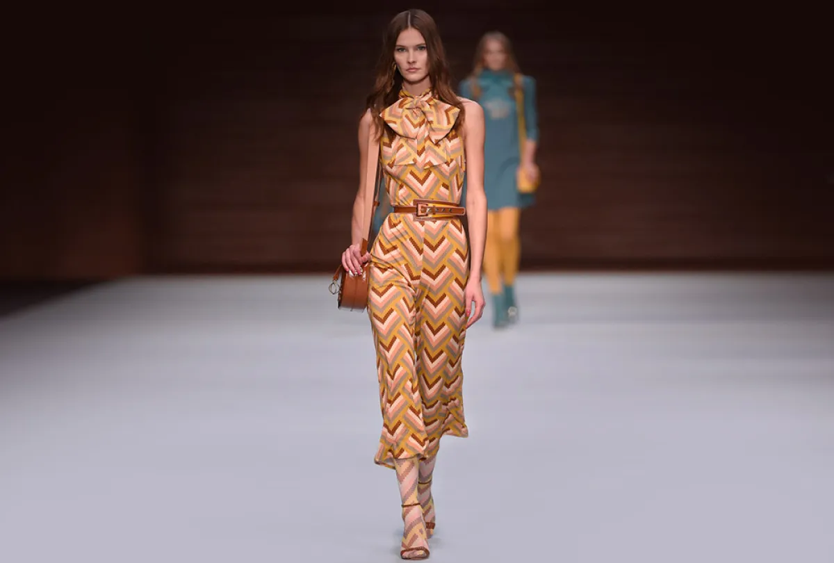 ضمن فعاليات أسبوع الموضة في ميلانو والتي ضمت الكثير من الابداعات ومن الصيحات المبتكرة تابعنا مجموعة دار “اليزابيتا فرانشي” Elisabetta Franchi لموسم خريف وشتاء 2018-2019، وقد لفتتنا هذه المجموعة من عدة نواحي، أولاً أنها بدت نسخة مُحدثة من حقبة السبعينات الغنية بالألوان الخريفية المميزة والقصات الأنثوية الجذابة، وكذلك فقد ضمت تصاميم مثالية لمختلف النساء من مختلف الأعمار والأذواق، وثالثاً فقد بدت المجموعة سهلة اللبس لمختلف المناسبات الرسمية منها والكاجوال، وقد جمعت بين الفخامة والعصرية في آن واحد.