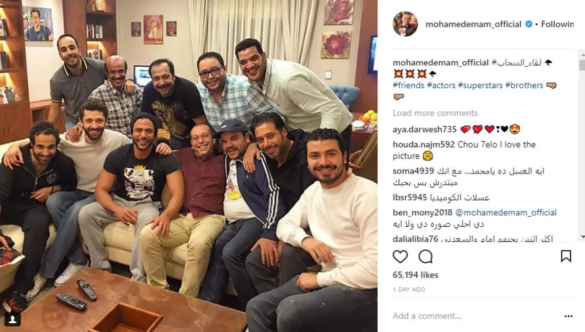 نشر الفنان محمد إمام، صورة جديدة له تجمعه بعدد كبير من النجوم، منهم أحمد السعدني، وأحمد فهمي، وأحمد رزق، وذلك عبر حسابه الشخصي على موقع انستقرام، وأثار "إمام" حالة من الجدل بين متابعيه، وذلك بسبب عضلاته، حيث اختلف شكله تمامًا، وتفاعل معه عدد كبير من متابعيه حيث علّق أحدهم قائلًا: "بس إيه العضلات الجامدة دي يا ابن الزعيم.