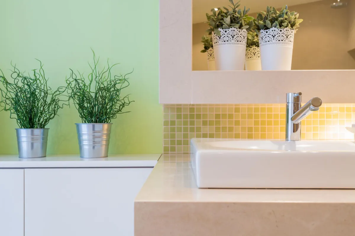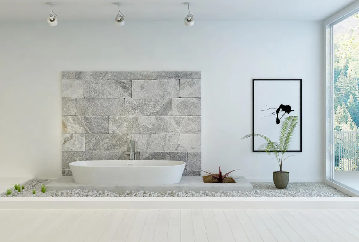 | إضافة مجموعة من الأحجار الطبيعيَّة والزنابق أو أخشاب البامبو، لغرض تعزيز الشعور بالطاقة الإيجابيَّة للطبيعة داخل الحمام.