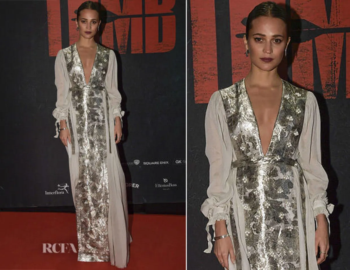تألقت Vikander البالغةمن العمر 29 عاماً، بفستان حرير طويل من دار Louis Vuitton العالمي للأزياء.