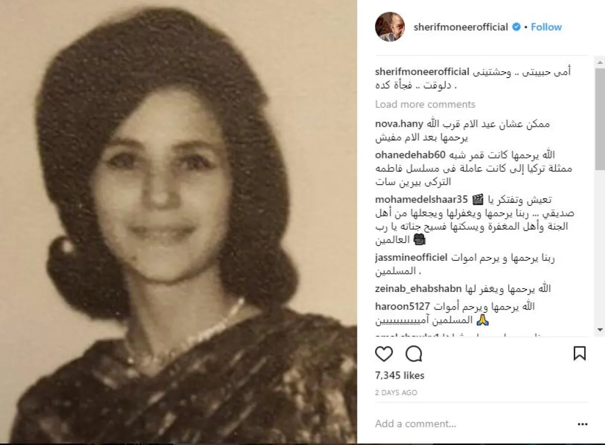 الفنان شريف منير شارك جمهوره بأول صورة لوالدته الراحلة في شبابها، وذلك على حسابه الخاص على موقع إنستقرام، ووجه إليها رسالة مؤثرة، بمناسبة يوم المرأة العالمي قائلا: أمي حبيبتى .. وحشتينى دلوقت .. فجأة كده.