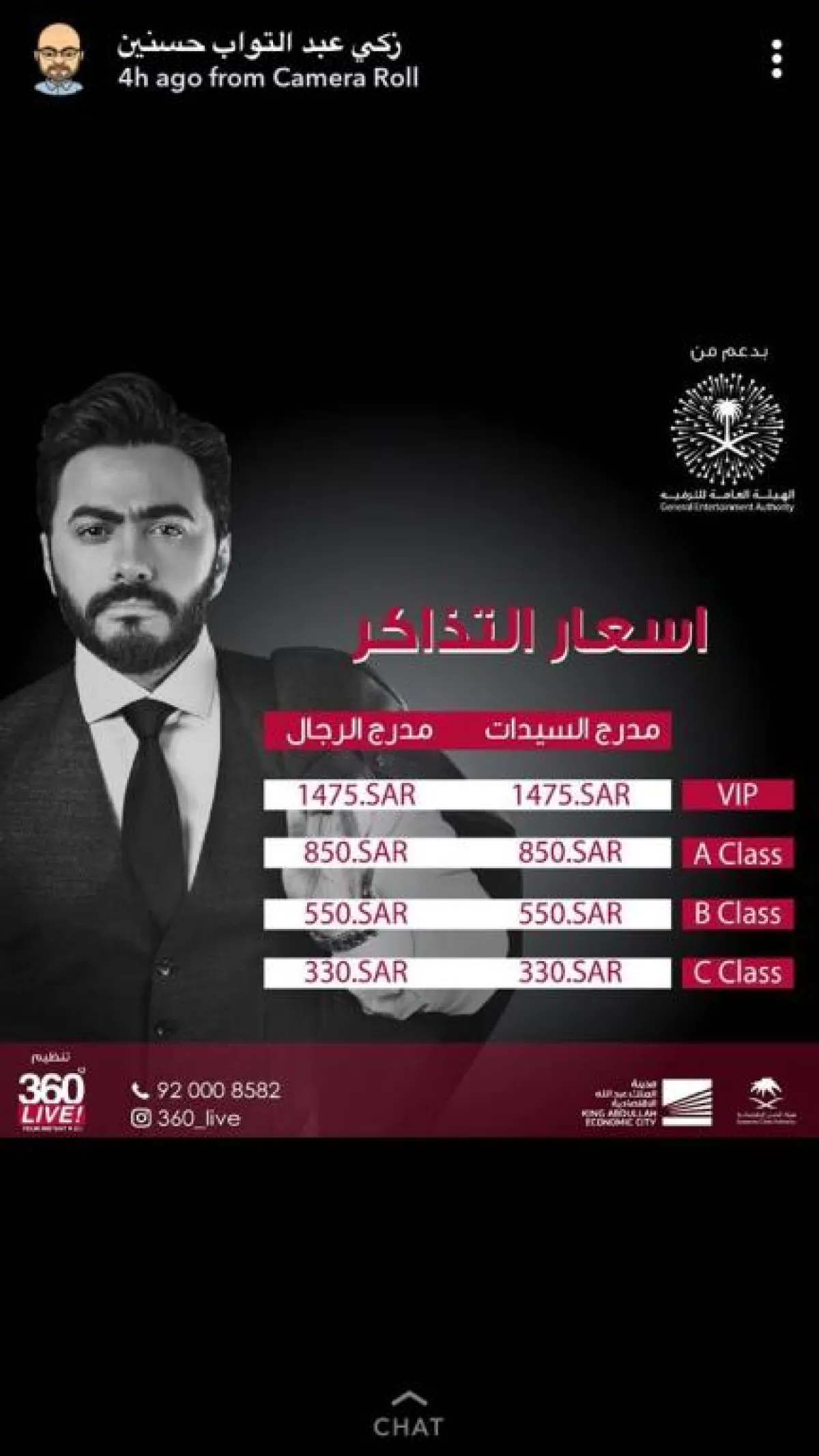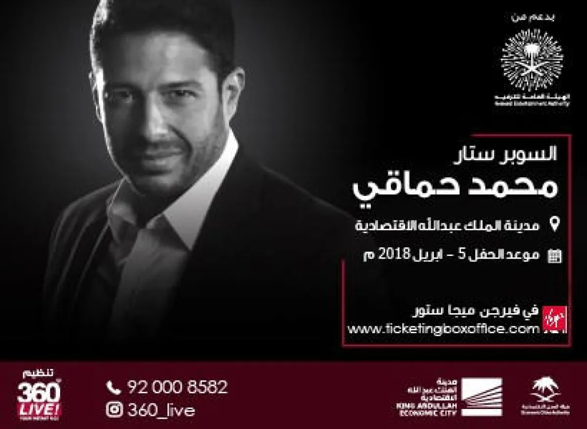 يبدوا أن الجمهور السعودي متعشطا لحضور حفلات المطربين النجوم العرب الذي تنظّم لهم حفلات في السعودية، مثل الحفل الغنائي جماهيري الذي يحيه الفنان تامر حسني للمرة الأولى في السعودية، والذي سيقام (يوم الجمعة 30 مارس الجاري) في مدينة الملك عبد الله الاقتصادية، من تنظيم شركة "360 live" لصاحبها زكي عبد التواب حسنين ومتابعة مديرها العام محمد زكي حسنين، وبدعم من الهيئة العامة للترفيه.