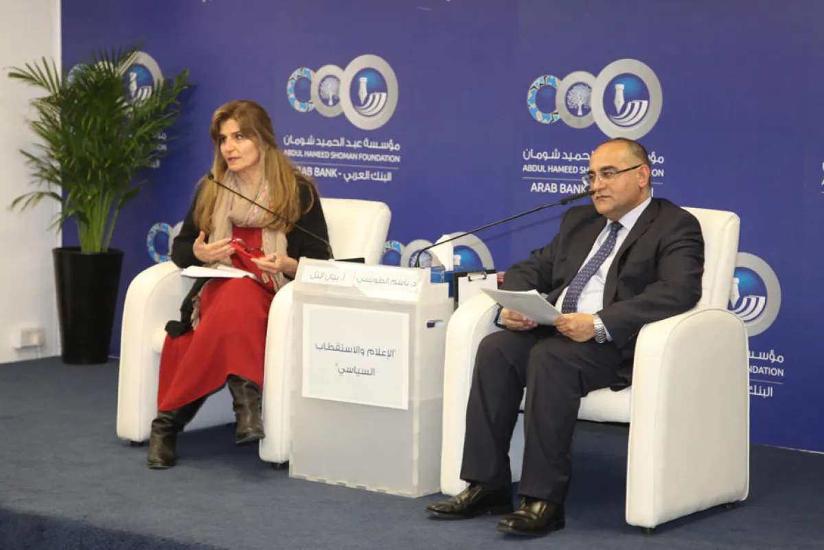 استضاف منتدى عبد الحميد شومان، عميد معهد الإعلام الاردني وأستاذ الإعلام الدكتور باسم الطويسي، لإلقاء محاضرة تتحدث عن قضايا الإعلام وتأثيره ومشاركته في الحياة السياسية وفي السياسية عموماً حملت عنوان "الإعلام والاستقطاب السياسي"، وقدم هذه المحاضرة وأدار الحوار فيها مع الجمهور الإعلامية بيان التل، وذلك في مقر منتدى شومان الثقافي في منطقة جبل عمان في العاصمة الأردنية.