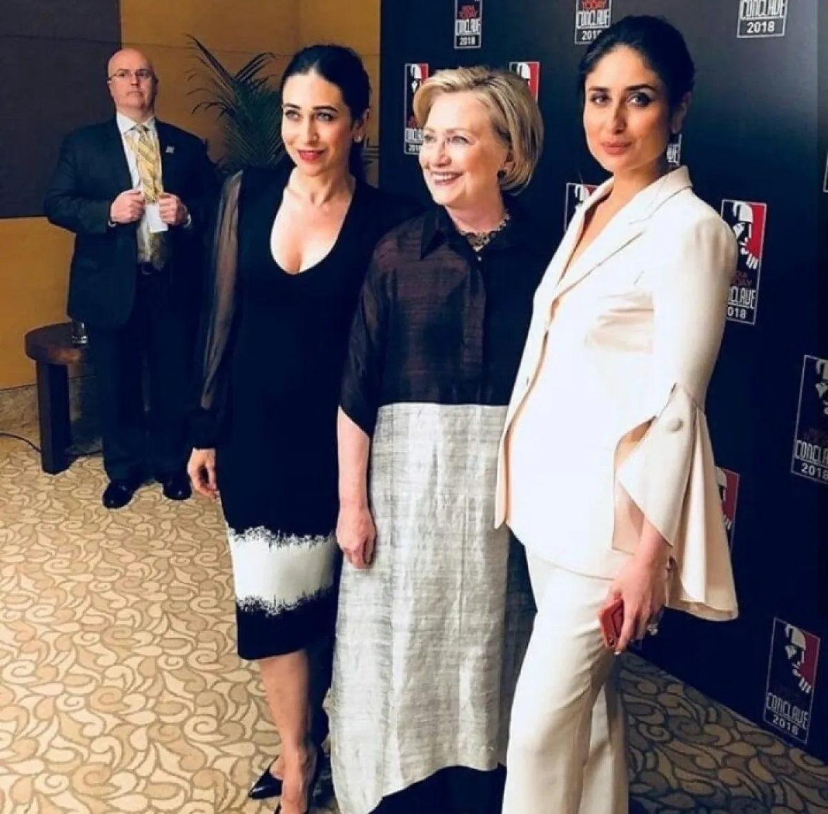وفي التفاصيل فقد التقت كارينا وكاريشما كابور بالسيدة كلينتون أثناء حضور مؤتمر "Conclave 2018" بدورته الـ17 في الهند، والتقطتا عددًا من الصور التذكارية مع هيلاري خلال الحفل.