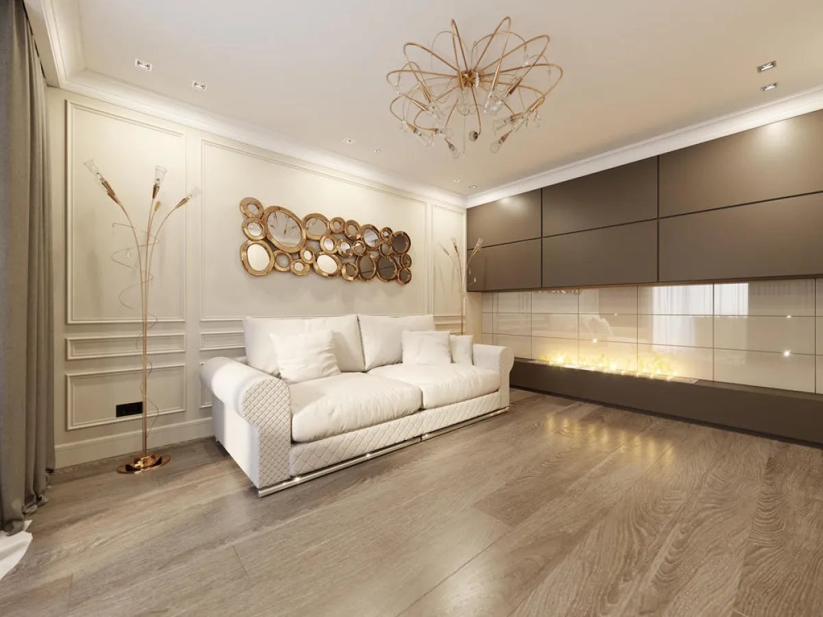 في الديكور الداخلي، يُعتبر اللون الذهبي من أجرأ الألوان، حيث إنَّه يفرض حضوره أينما يحل، وهو يرتبط غالبًا بالديكورات الكلاسيكية، بيد أنَّه يُسجِّل أيضًا حضوره في الديكورات المودرن، حتَّى يمدُّها بلمسات فخمة.