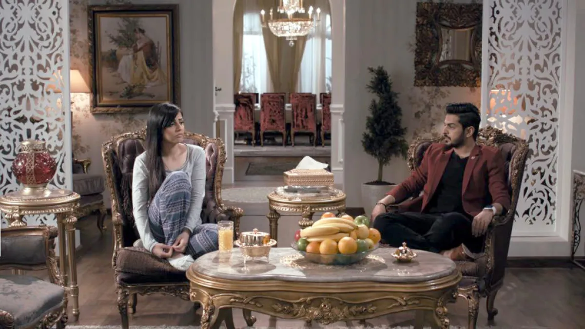 نيرمين محسن وإبراهيم الزدجالي في مشهد من مسلسل صيف بارد