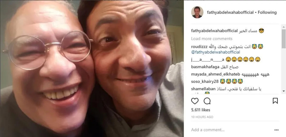 وفي التوقيت نفسه، واصل الفنان فتحي عبد الوهاب نشر صور السيلفي الضاحكة، وهذه المرة مع شريكه ببطولة مسلسل "عوالم خفية" الفنان صلاح عبد الله، الذي علق على الصورة قائلًا: مع أخويا الصغيّر وتلميذي وحبيبي ملك السيلفي #فتحي_عبدالوهاب في العوالم الخفية".
