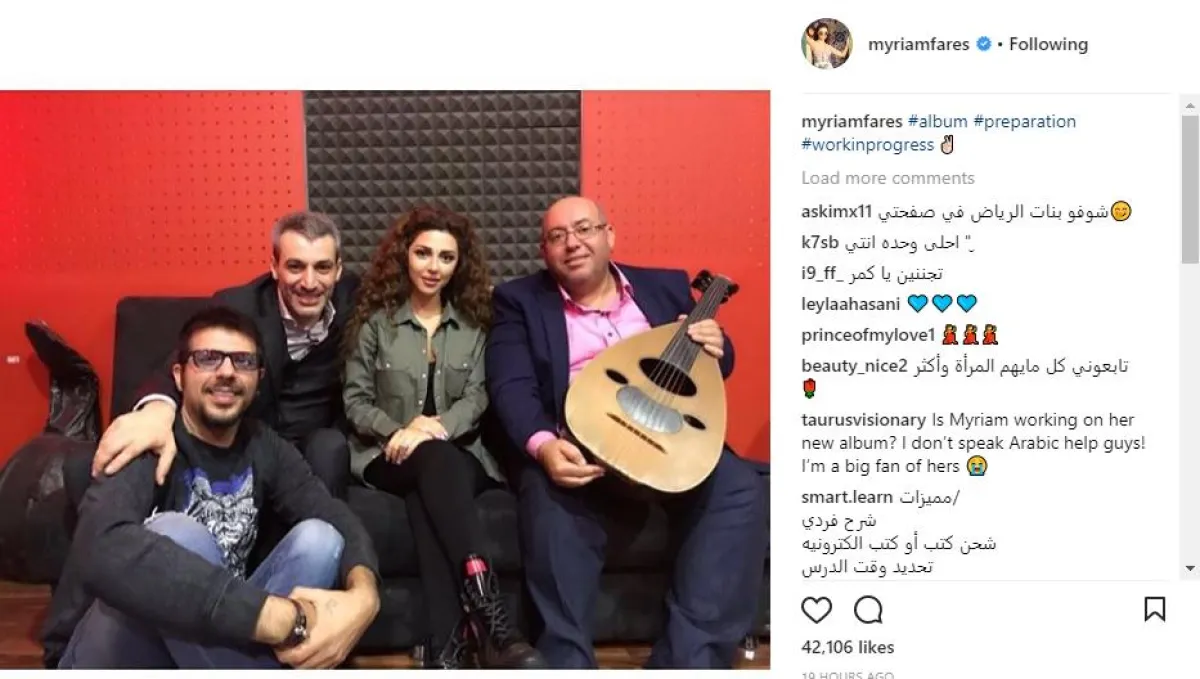 المطربة اللبنانية ميريام فارس زفّت خبرًا سارًّا لجمهورها المترقّب صدور ألبومها الجديد بعد غياب ثلاث سنوات، بعدما نشرت صورة لها من الاستديو عبر حسابها الشخصي على انستقرام، عقب تسجيلها إحدى أغنيات الألبوم وعلّقت عليها: "الألبوم في مرحلة التحضير.