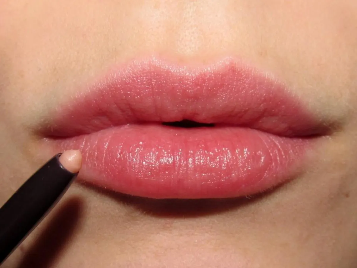 ثانياً: أحضري قلم تحديد شفاه بلون فاتح، وارسمي حدوداً جديدة لشفتيك لتظهرا أصغر حجماً.