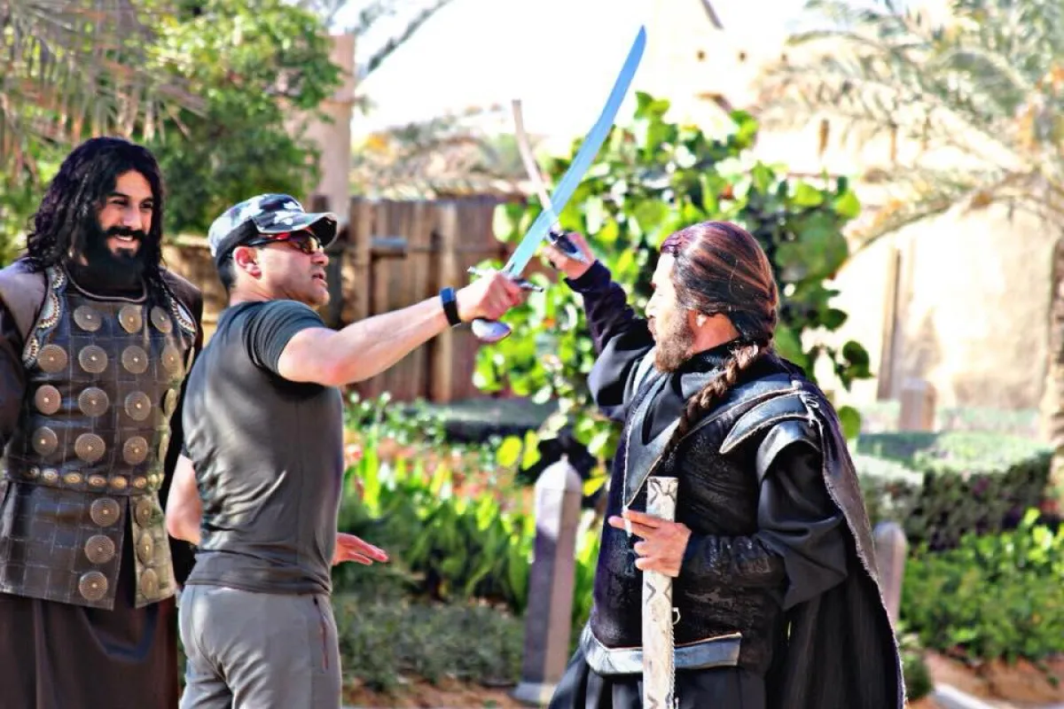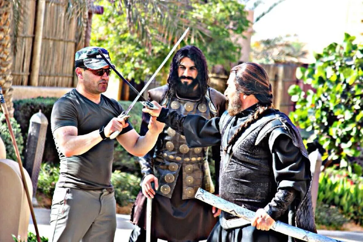 وضمن مشاهد العمل سنشهد عدداً من المواجهات بالسيف ما استدعى تلقي النجمين السوريين تدريبات لاستخدام السيف بمهارة من قبل رئيس فريق المجازفين السوريين جمال الظاهر حيث يشارك الفريق في معارك المسلسل .