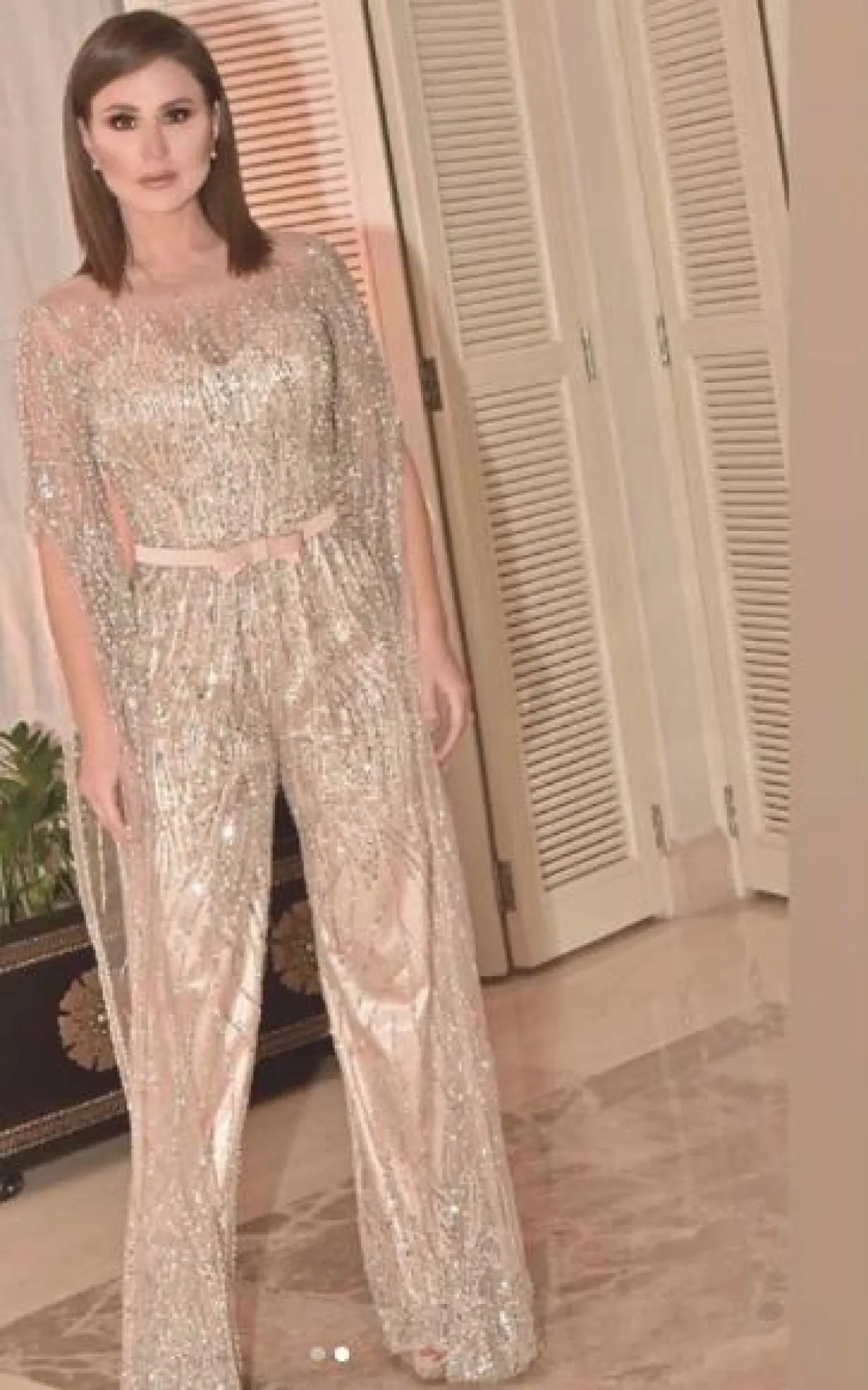 ديمة قندلفت في اطلالة مبهرجة في فستان قصير براق