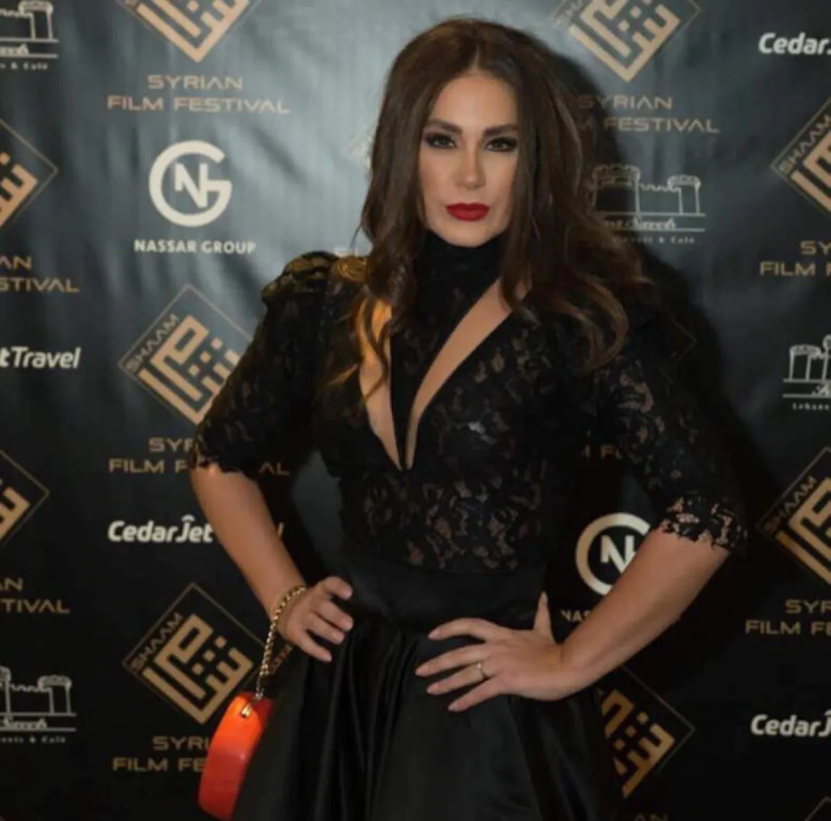 فستان أحمر من الدانتيل اختارته ديمة قندلفت