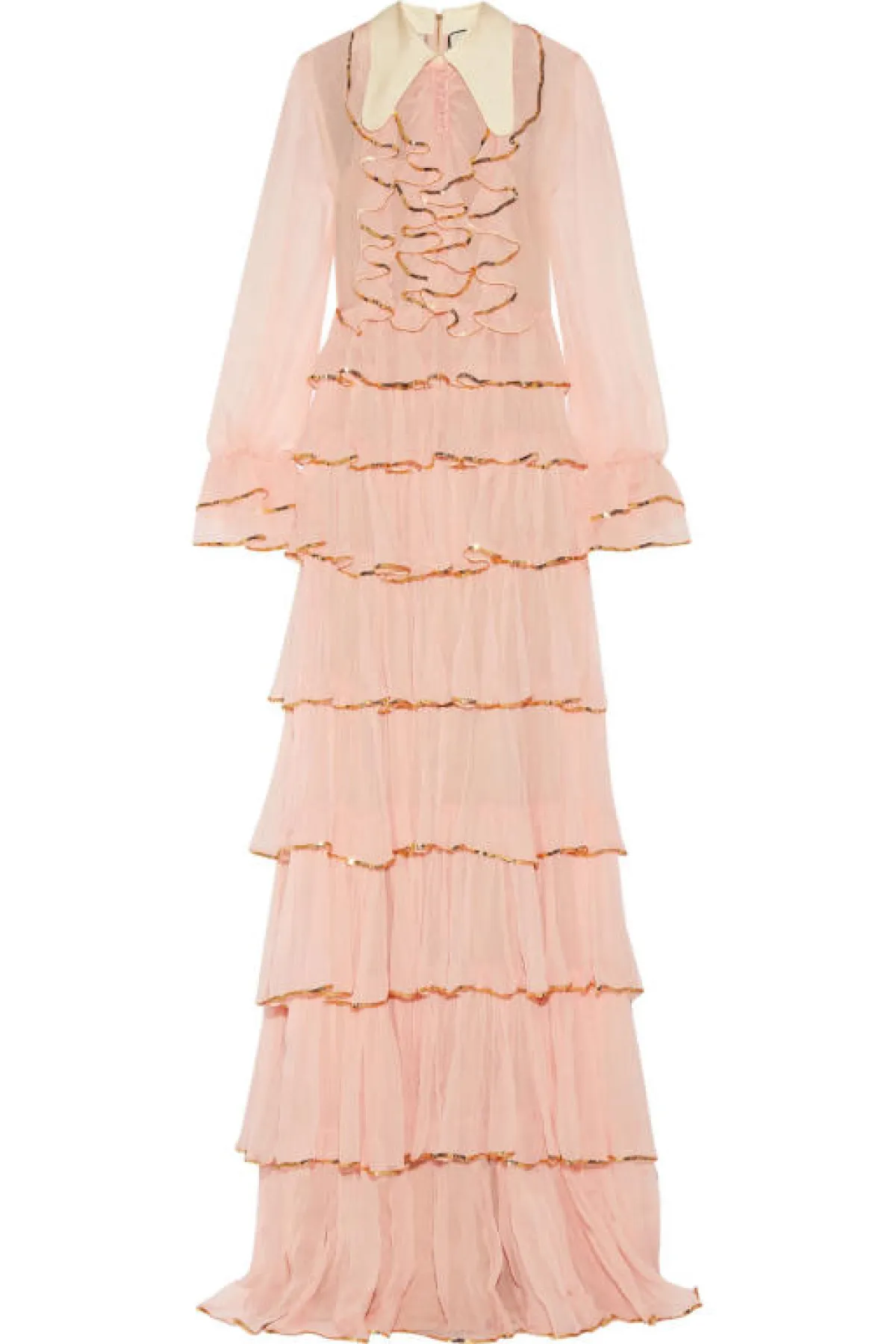 وقد شاهدنا أجمل التصاميم منها لدى كل من “ايلي صعب” Elie Saab، “اليس أند أوليفيا” Alice&Olivia، “غوتشي” Gucci، “ماركيزا” Marchesa، وغيرها.