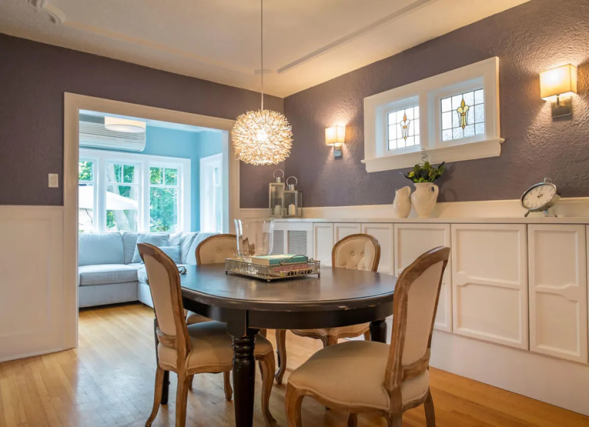 | تُناسب طاولة الطعام الدائرية أو البيضوية الغرفة ذا المساحة الضيِّقة، على ألا تكون زواياها حادَّة.