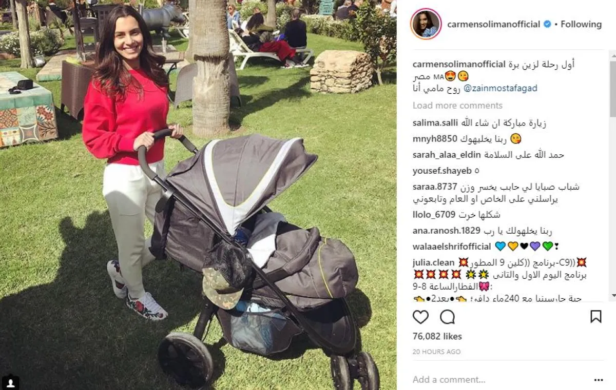 المطربة كارمن سليمان، شاركت جمهورها عبر صفحتها على موقع إنستقرام صورة جديدة مع ابنها زين، فى رحلة ترفيهية مع ابنها وزوجها، وعلقت عليها قائلة: أول رحلة لزين برة مصر، يا روح مامي أنا.