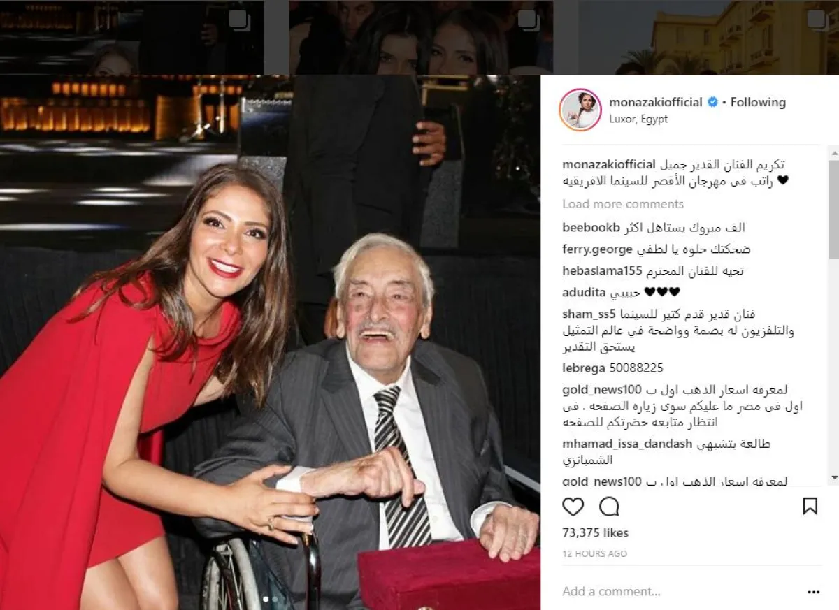 وشاركتها النجمة منى زكي الاحتفال بالنجم جميل راتب، ولكن عبر إنستقرام، حيث نشرت صورة لها برفقته من كواليس التكريم، وعلقت عليها بقولها: من تكريم الفنان القدير جميل راتب.