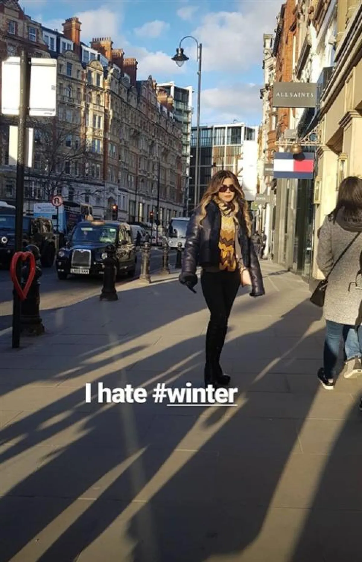 المطربة اللبنانية نوال الزغبي، نشرت صورة لها من شوارع العاصمة البريطانية لندن، عبر حسابها الشخصي بموقع التواصل الإجتماعي إنستقرام، وعلقت عليها قائلة "أكره الشتاء".