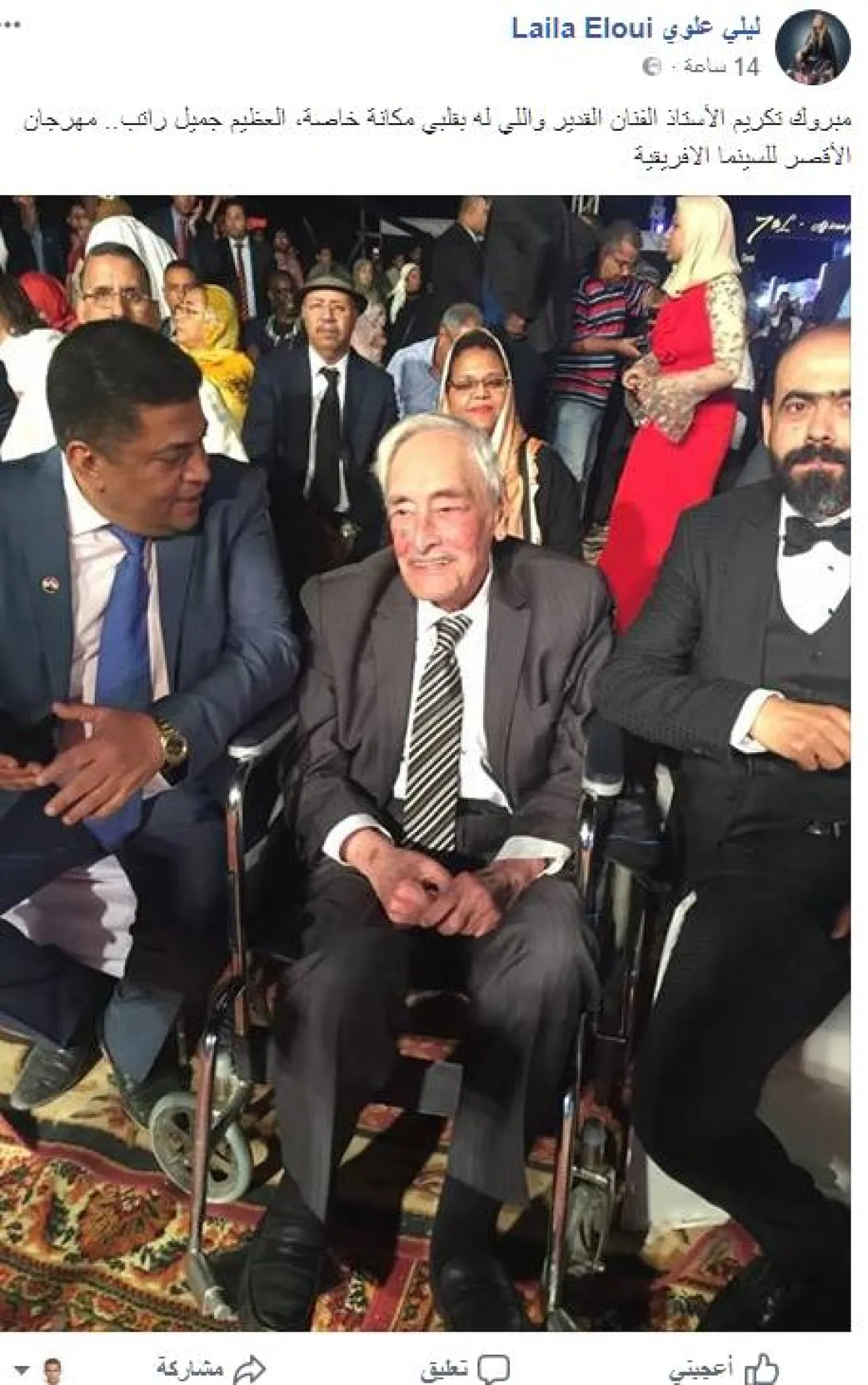 نشرت النجمة ليلى علوي، عبر حسابها الرسمى بموقع الفيس بوك، صورة للفنان جميل راتب من حفل افتتاح مهرجان الأقصر السينمائى الدولي، وعلقت قائلة: مبروك تكريم الأستاذ الفنان القدير واللي له بقلبي مكانة خاصة، العظيم جميل راتب.. مهرجان الأقصر للسينما الأفريقية".
