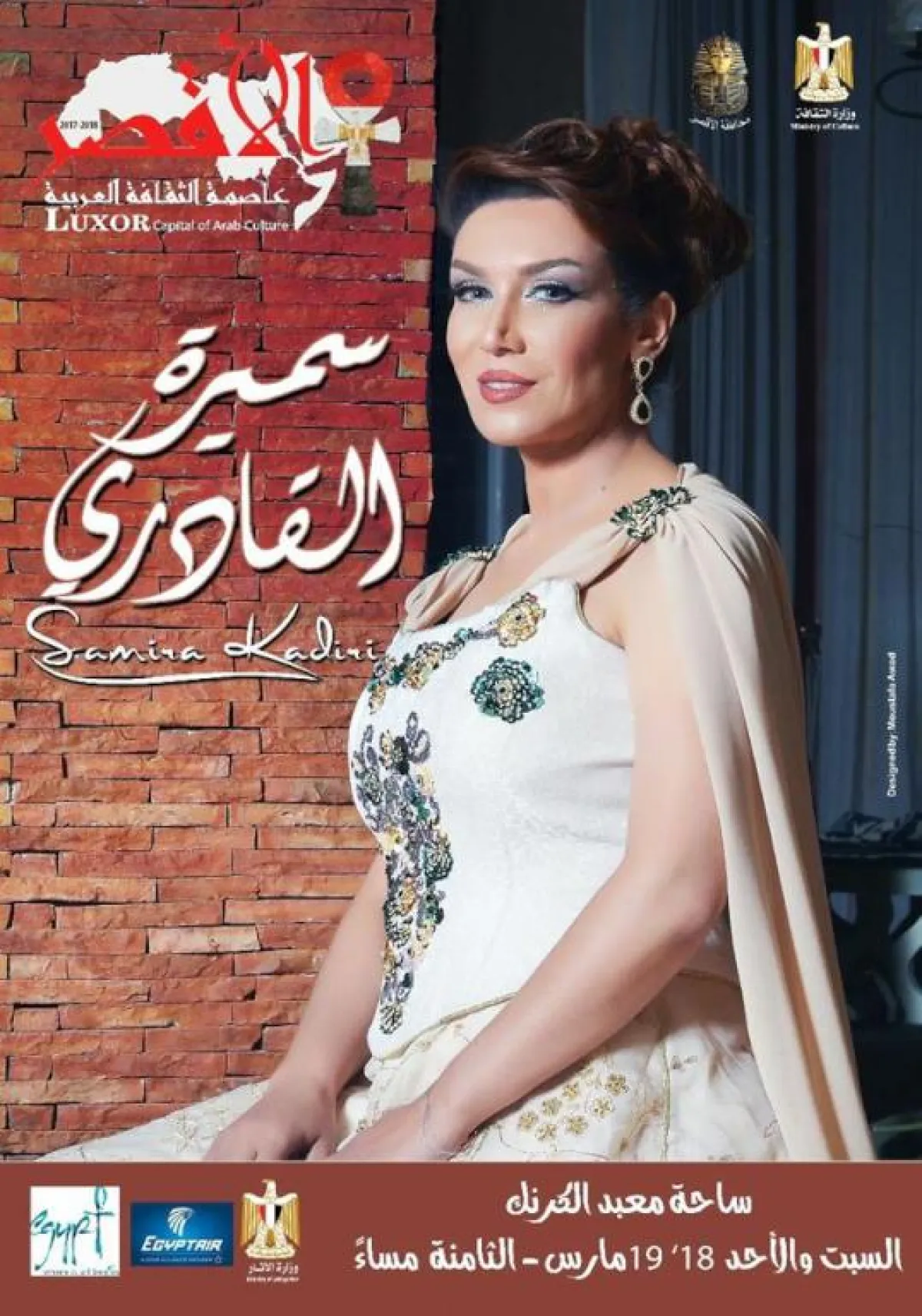 تحيي السوبرانو المغربية سميرة القادري، حفلين بمناسبة فعاليات الأقصر بجمهورية مصر العربية. يومي 17 و 18 مارس الجاري والذي سيكون مشتركا مع الفنان المصري محمد منير في حي معبد الكرنك.