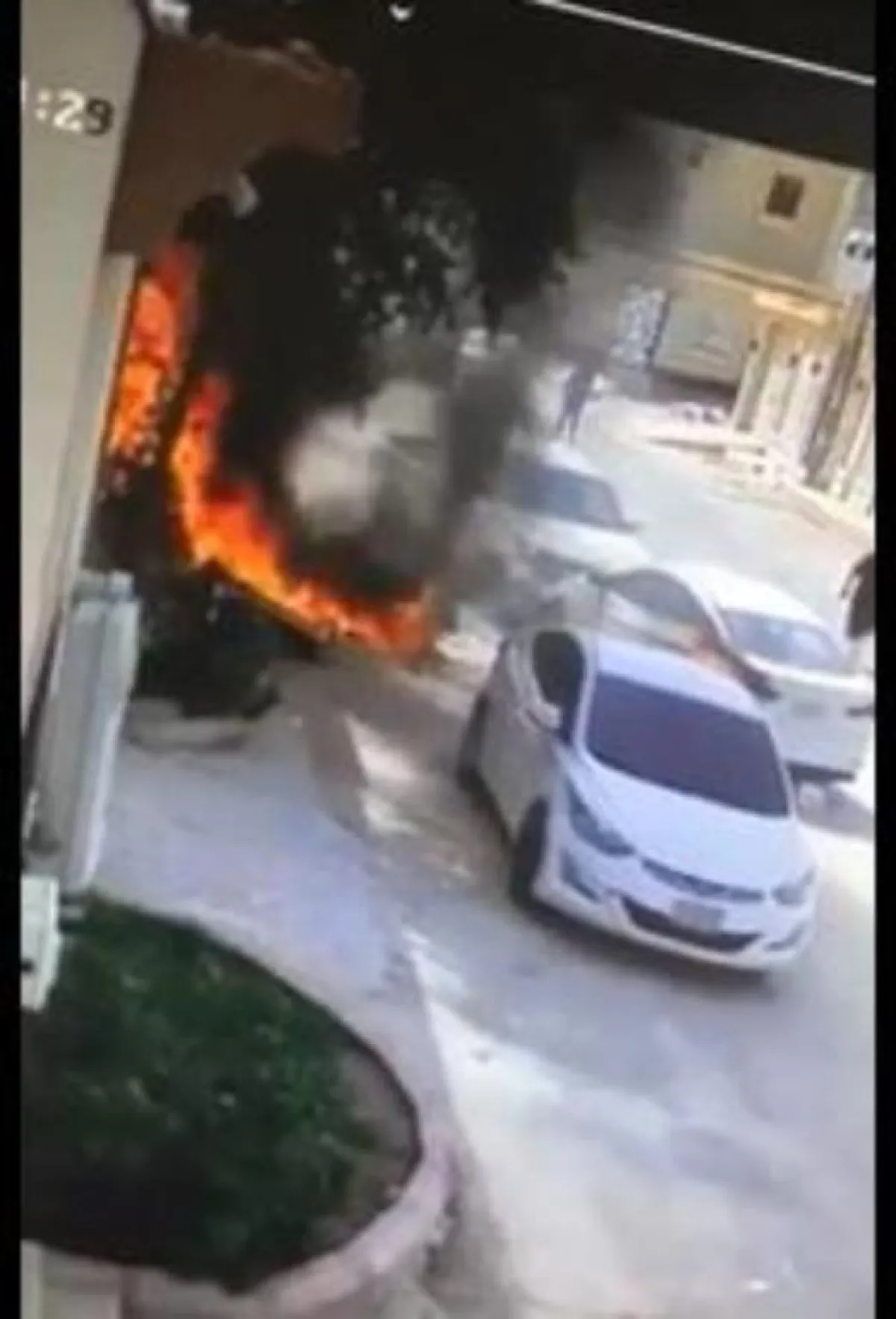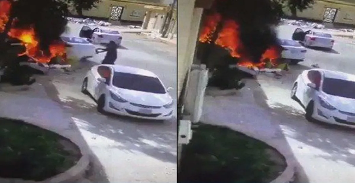 وأظهر مقطع فيديو تداوله نشطاء موقع التواصل الاجتماعي تويتر، شابًا بسيارة داتسون يقوم بإبعاد السيارة المحترقة مبينًا أن السبب هو سماعه صراخ أهل المنزل والأطفال يستنجدون، فقام مستخدمًا سيارته لإبعاد السيارة المحترقة قبل أن تمتد النيران إلى المنزل.