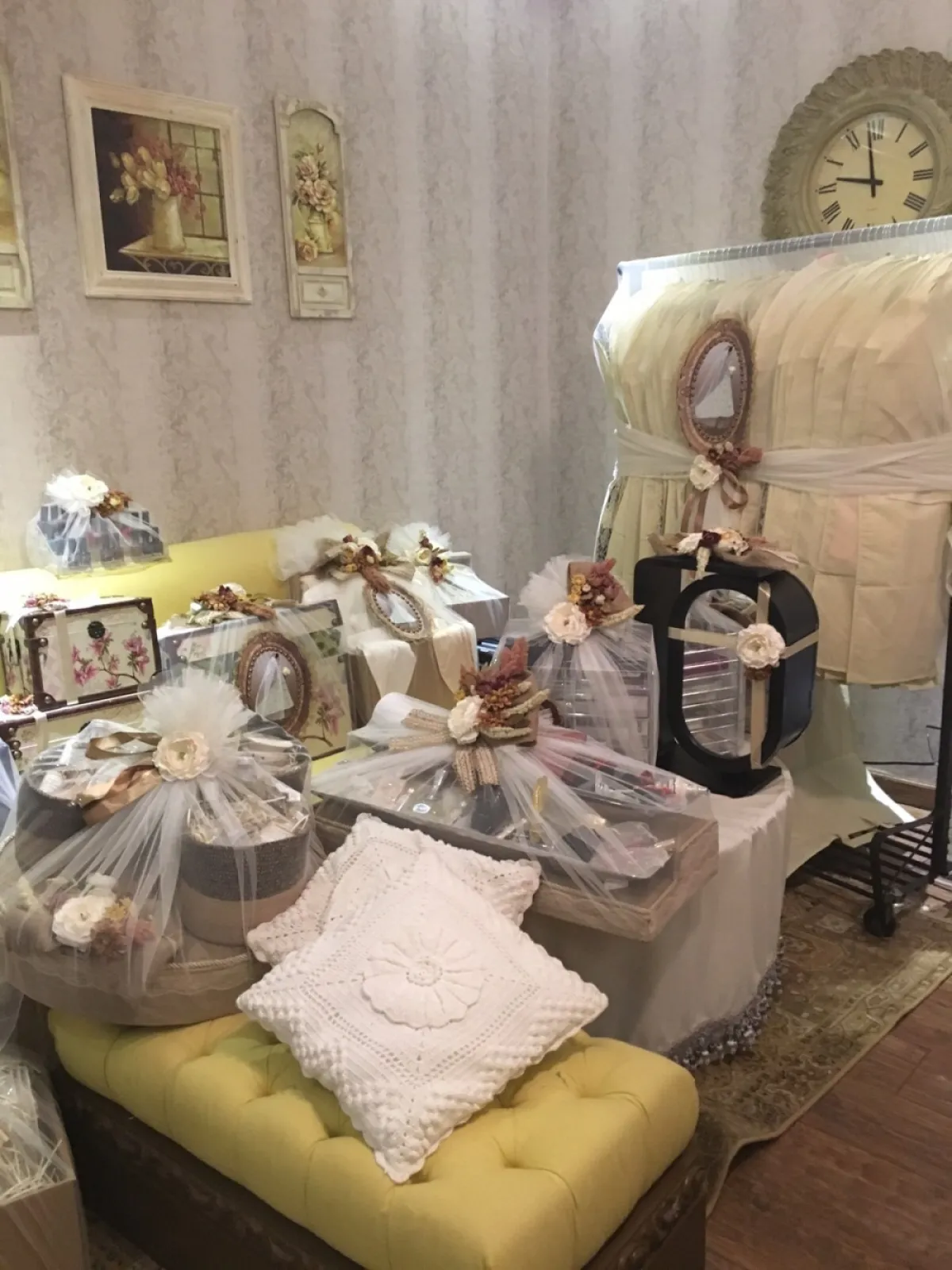 ـ الأحذية: الجزم بأنواعها من كعوب للسهرات، وأحذية رياضيَّة، وجزم عمليَّة، ونضع كل حذاء في صندوق صغير أو كيس دنتيل للمحافظة عليه وإعطائه شكلاً جذاباً، وابرازه أكثر فخامة.