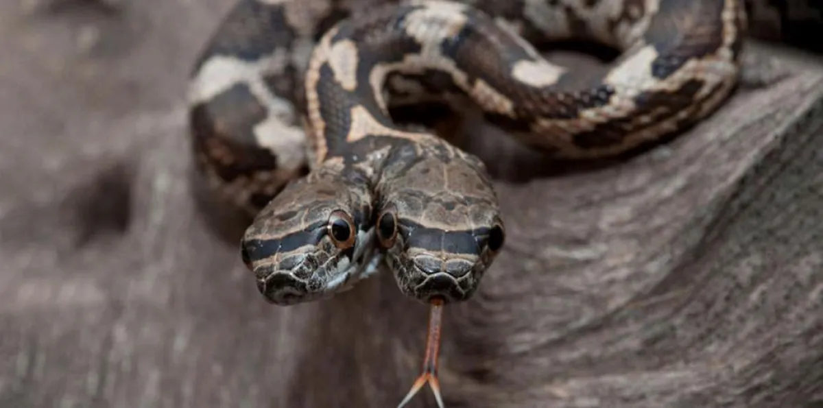 فيديو.. أفعى نادرة برأسين وقلبين منفصلين تحير العلماء