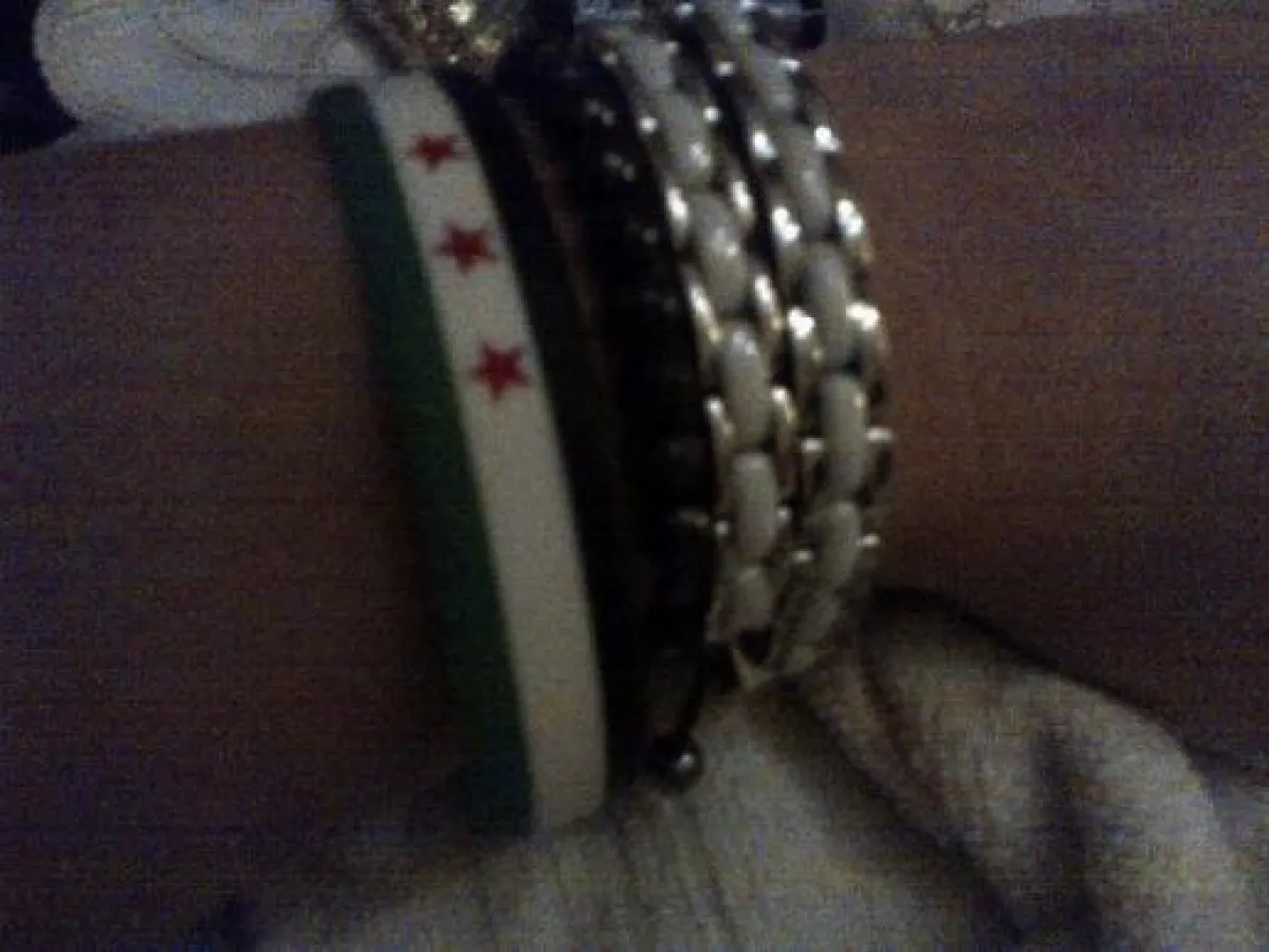 ونشرت أصالة صورة السوار الذي قالت إنه الأغلى والذي يحمل علم الثورة السورية.