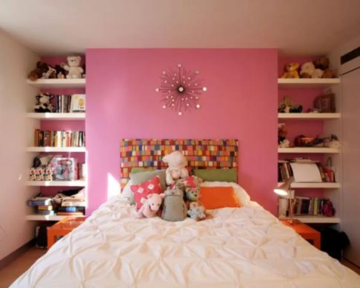*من المفضّل طلاء أبواب الخزانة باللون المستخدم في طلاء الجدار، وهذا الأخير قد يحمل لونين.ويُعتبر اللونان الأبيض والزهري مزيجاً مثاليّاً لغرفة نوم الفتاة.