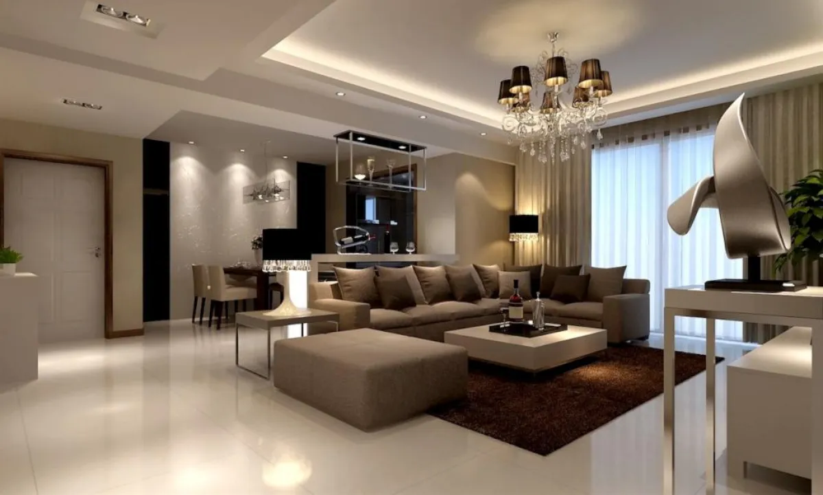 1. الصالون: تختلف الإنارة في هذه المساحة باختلاف طبيعة الاستقبال، سواء كان رسميًّا أو غير رسمي، إذ يحتاج ذلك الرسمي إلى كمٍّ معتدل وهادئ منها، فيما غير الرسمي يتطلبها عالية، ولا يستدعي اللجوء إلى تلك الخاصَّة بالديكور.