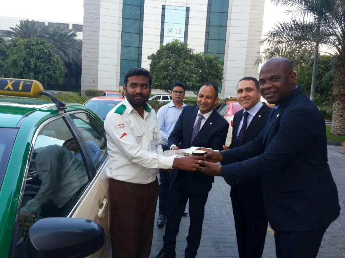 اختار فندق في دبي الاحتفال بيوم السعادة العالمي، بتوزيع الهدايا والحلويات على سائقي التاكسي في شوارع المدينة.