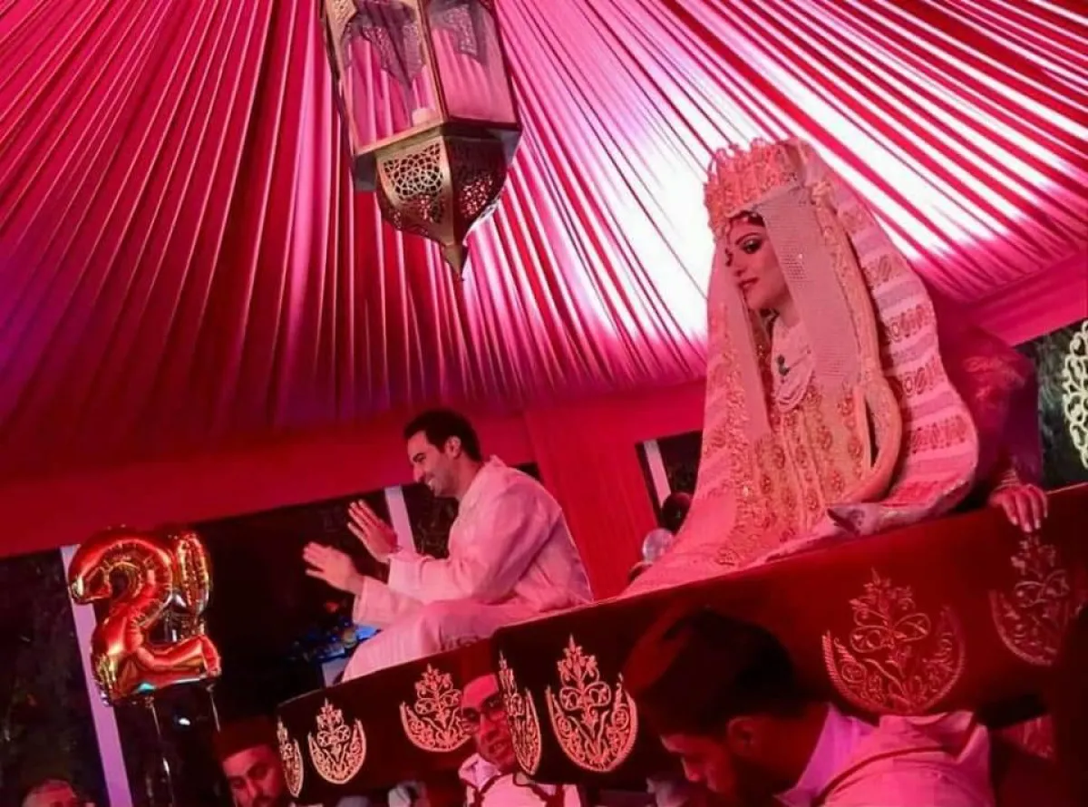 مهدي بناني برفقة عروسه وهي فوق العمارية