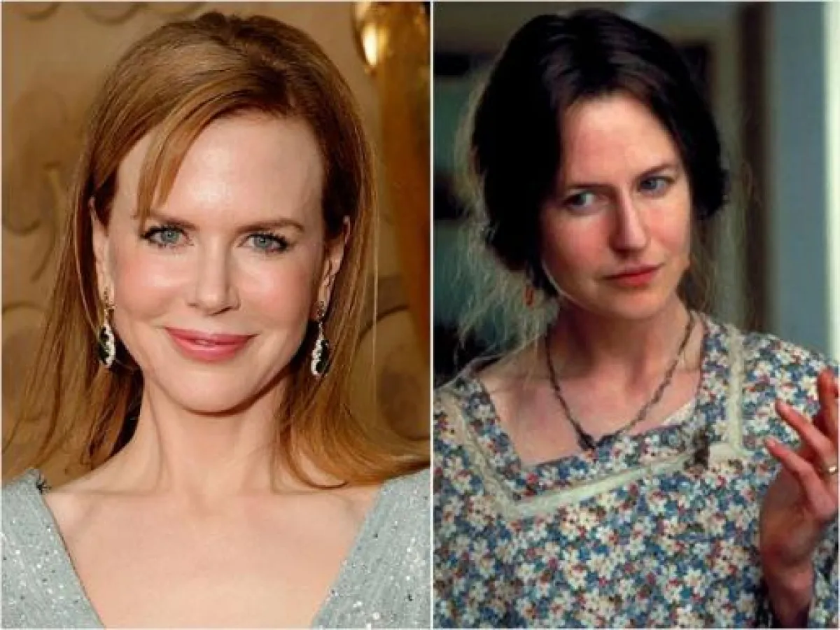 10. الممثلة نيكول كيدمان: جسّدت شخصيّة المؤلفة "فيرجينا وولف" في فيلم "The Hours"، وظهرت بأنف اصطناعيّ وبدون مكياج.