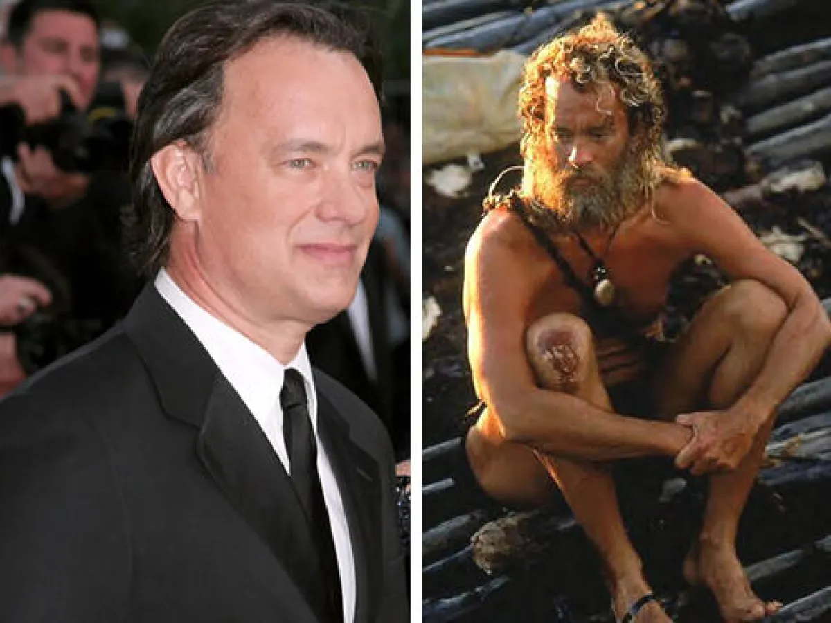 21. توم هانكس: يبدو مختلفاً في فيلم "كاست أواي" إذ أطال شعره وقام بإطلاق لحيته.
