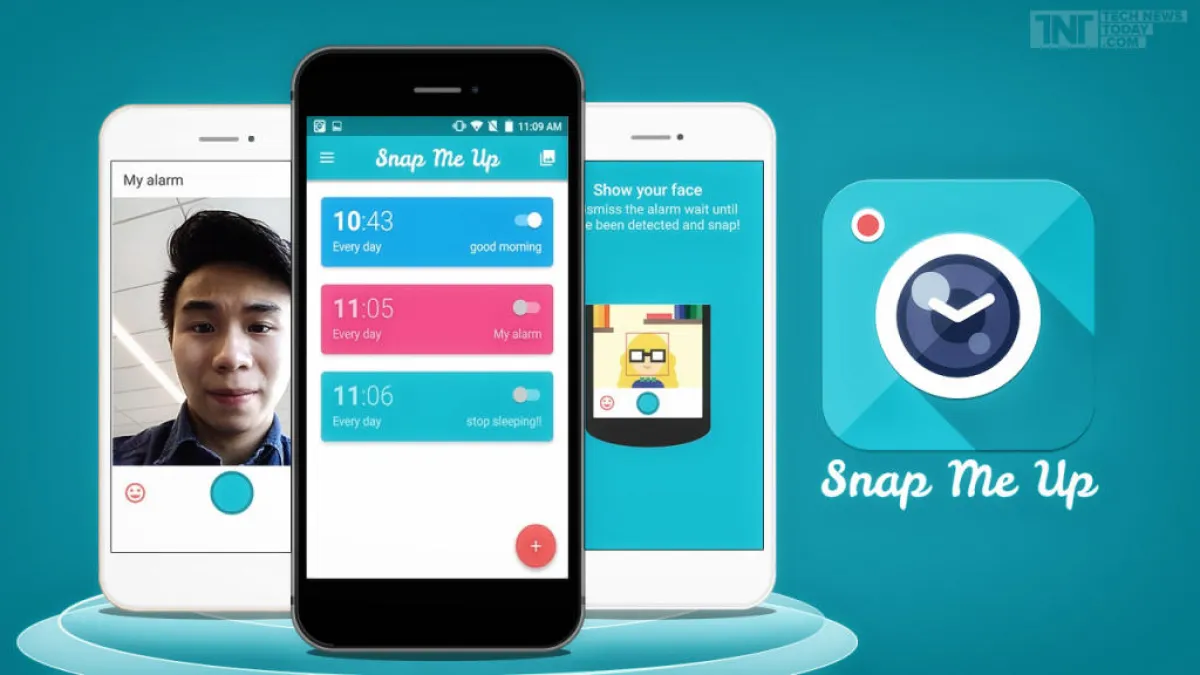 يساعدك على الاستيقاظ من النوم بطريقة مختلفة عن باقي التطبيقات الأخرى، حيث لا يتوقف منبه هذا التطبيق إلا بالنظر إلى شاشة الهاتف والتقاط صورة سيلفي مما يساعدك على الاستيقاظ فى الموعد الذى ترغب فيه، وعند استخدام تطبيق Snap Me Up يمكنك أيضًا حفظ الصور الملتقطة عند الاستيقاظ، وإضافة الفلاتر لها وإمكانية معالجتها، ومشاركتها من خلال شبكات التواصل الاجتماعي مع أصدقائك.