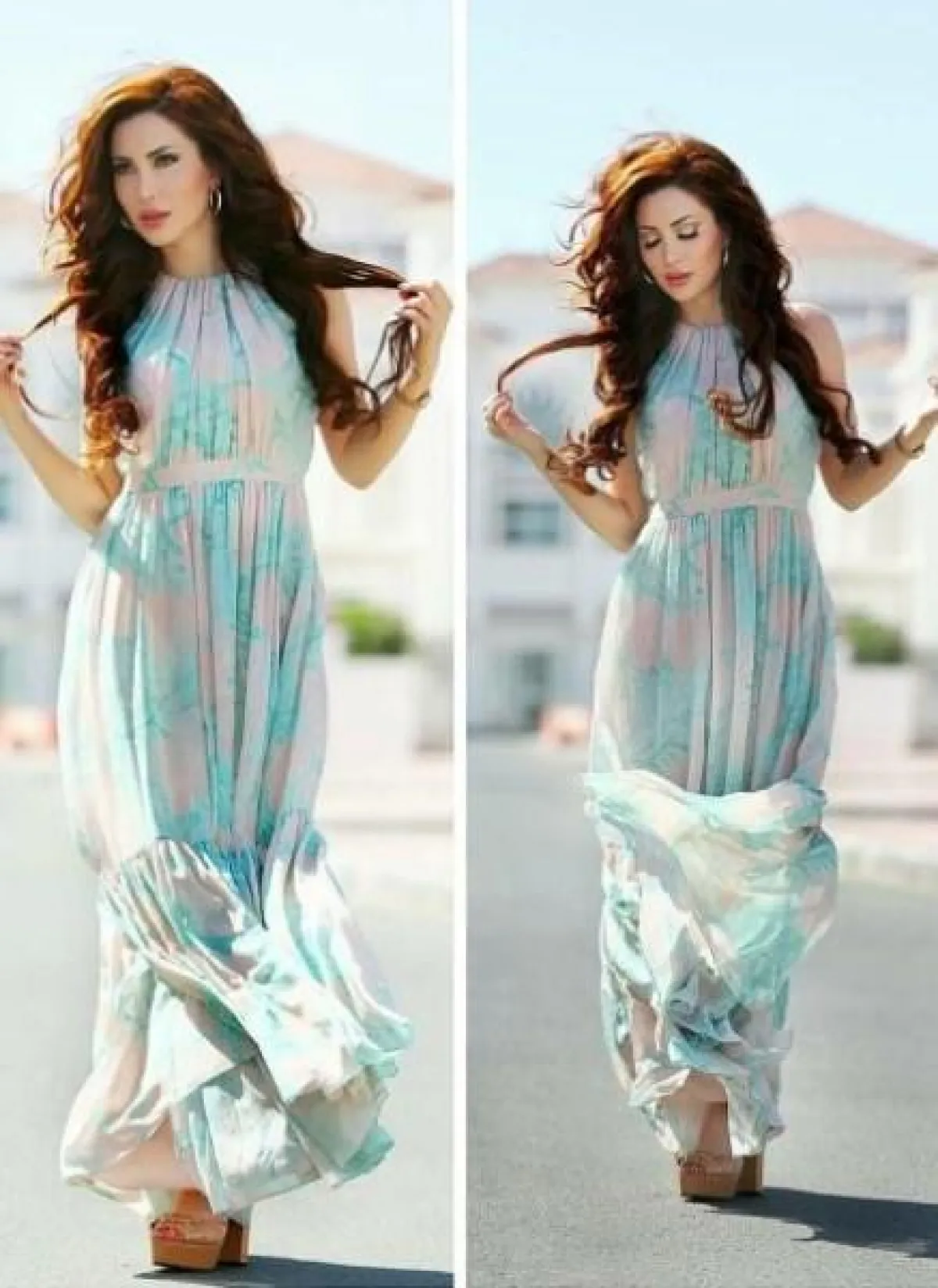 وفي إطلالة أخرى بدت نسرين طافش بقوام ممشوق وخصر نحيل بفضل الفستان الـ Halter المزدان بكسرات الذي اختارته لإحدى جلسات التصوير.