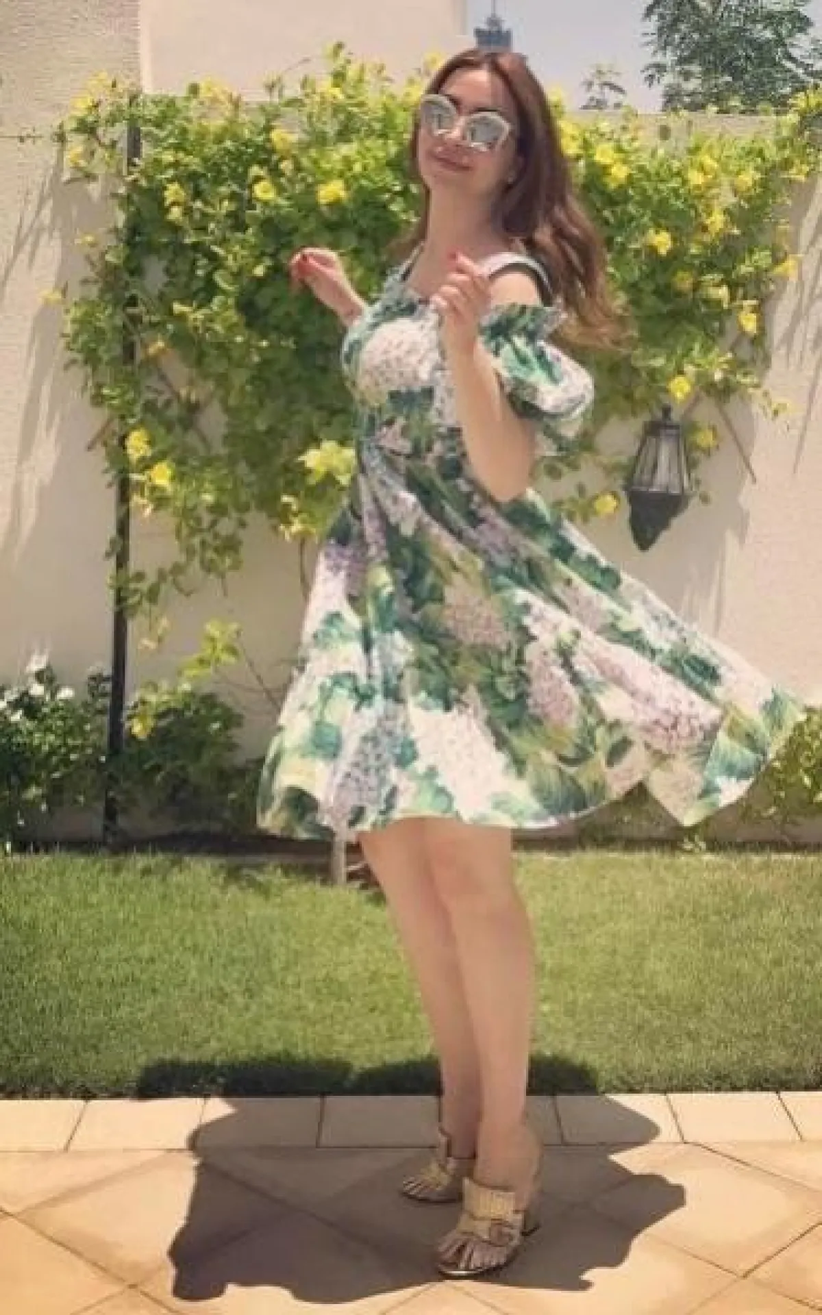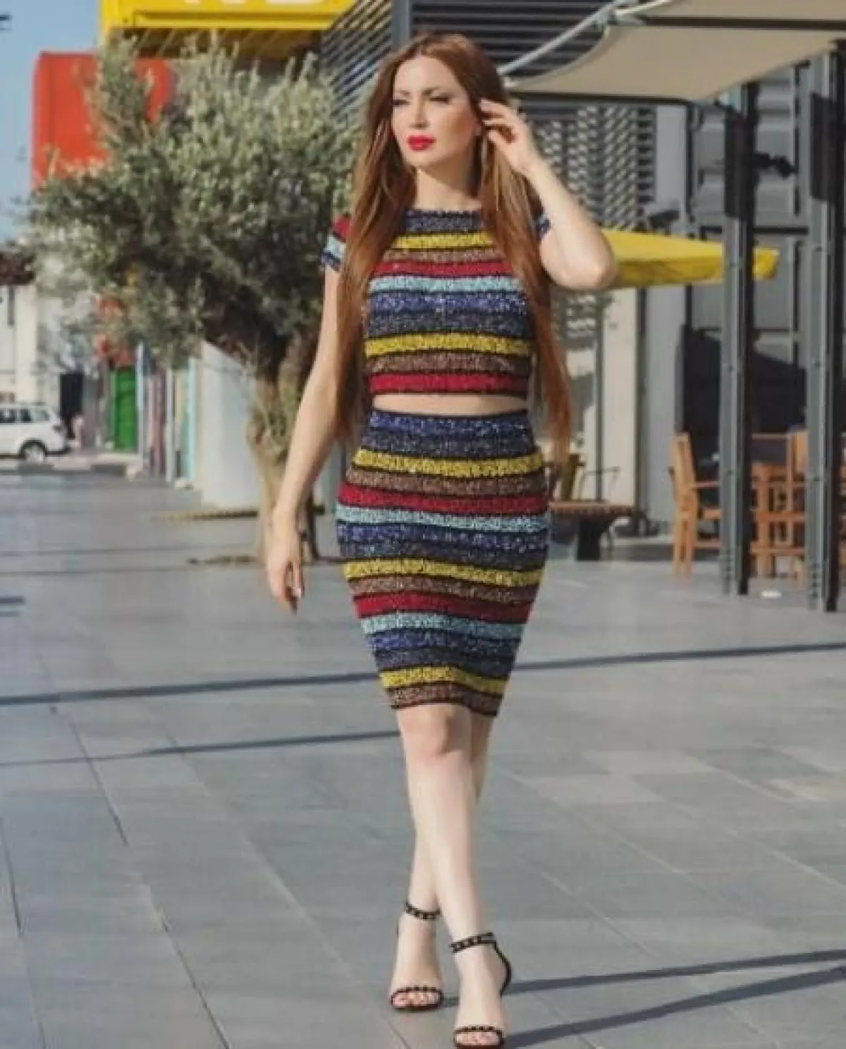 نسرين طافش تختار فستان قصير يبرز محافة خصرها