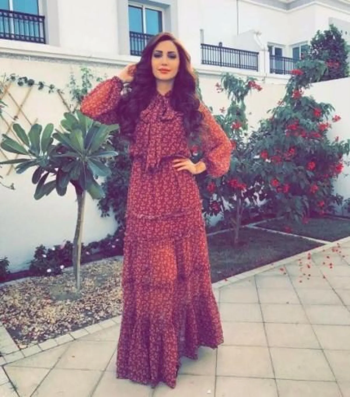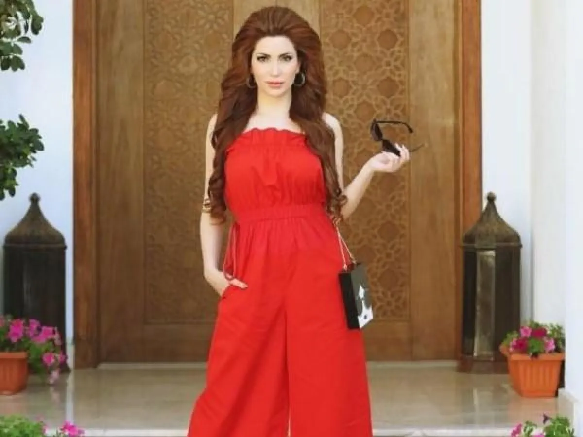 نسرين طافش تبرز أنوثتها ونحافة خصرها بفستان أحمر طويل