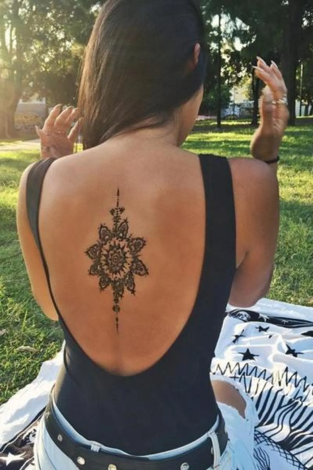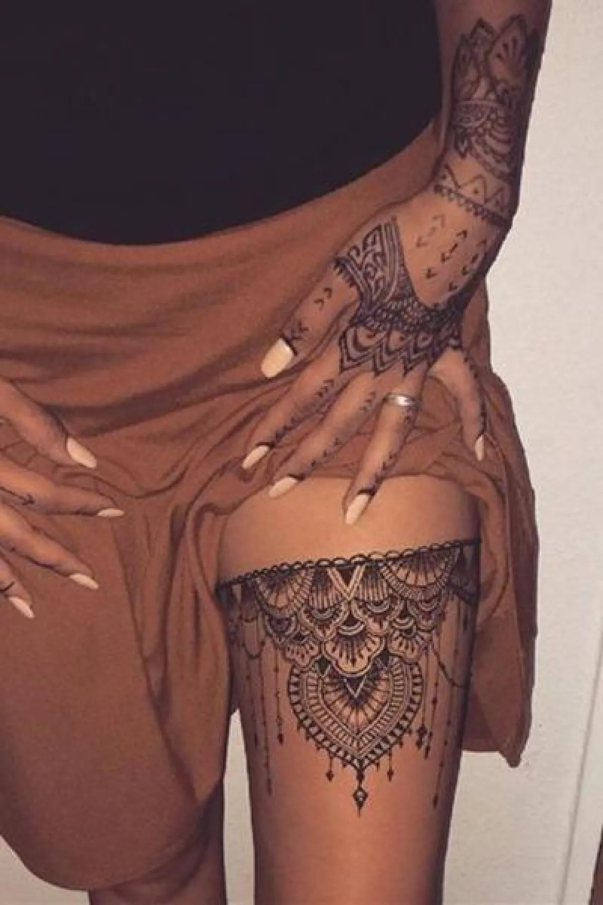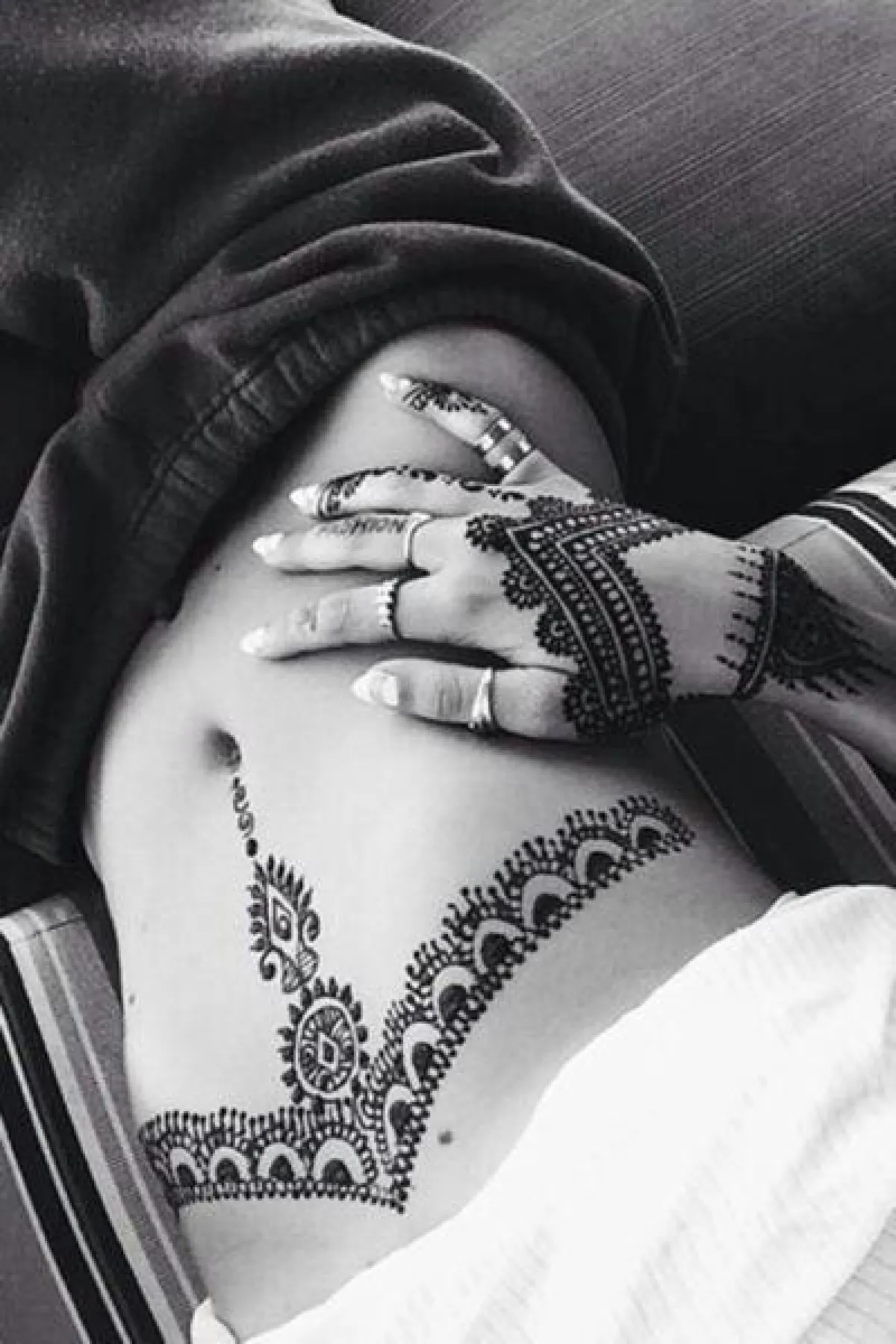 وتفضل المرأة نقش حناء على الظهر أو الفخذ من الأعلى أو الكتف وأحياناً تفضل رسمها على البطن أو منطقة الصدر، أي مناطق الإثارة، والقدمين واليدين.