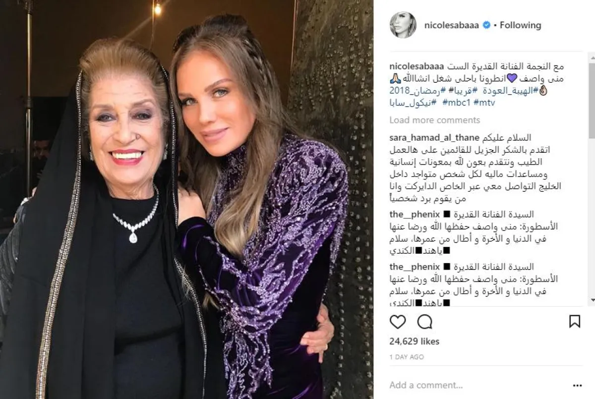 الفنانة اللبنانية نيكول سابا، نشرت عبر حسابها الرسمي على موقع إنستقرام صورة تجمعها بالفنانة منى واصف، وعلقت قائلة: مع النجمة الفنانة القديرة الست منى واصف، انتظرونا بأحلى شغل إن شاء الله في (الهيبة - العودة).