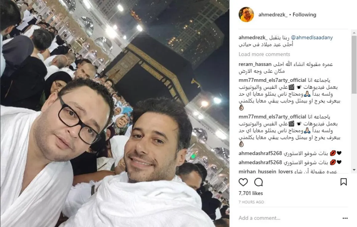 الفنان أحمد رزق قرر الاحتفال بعيد ميلاده بطريقة مختلفة، وسافر برفقة الفنان أحمد السعدني إلى السعودية، لأداء مناسك العمرة، ونشر عبر صفحته على موقع إنستقرام صورة لهما من أمام الكعبة، وعلق قائلا : أحلى عيد ميلاد في حياتي.. ربنا يتقبل.
