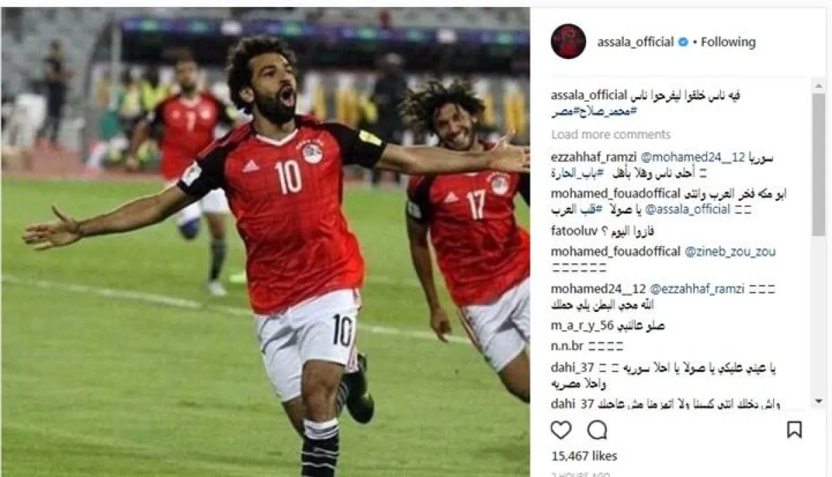 المطربة أصالة شاركت جمهورها نفس الصورة لمحمد صلاح عبر صفحتها بموقع إنستقرام، وعلقت عليها قائلة: في ناس خلقوا ليفرحوا ناس.