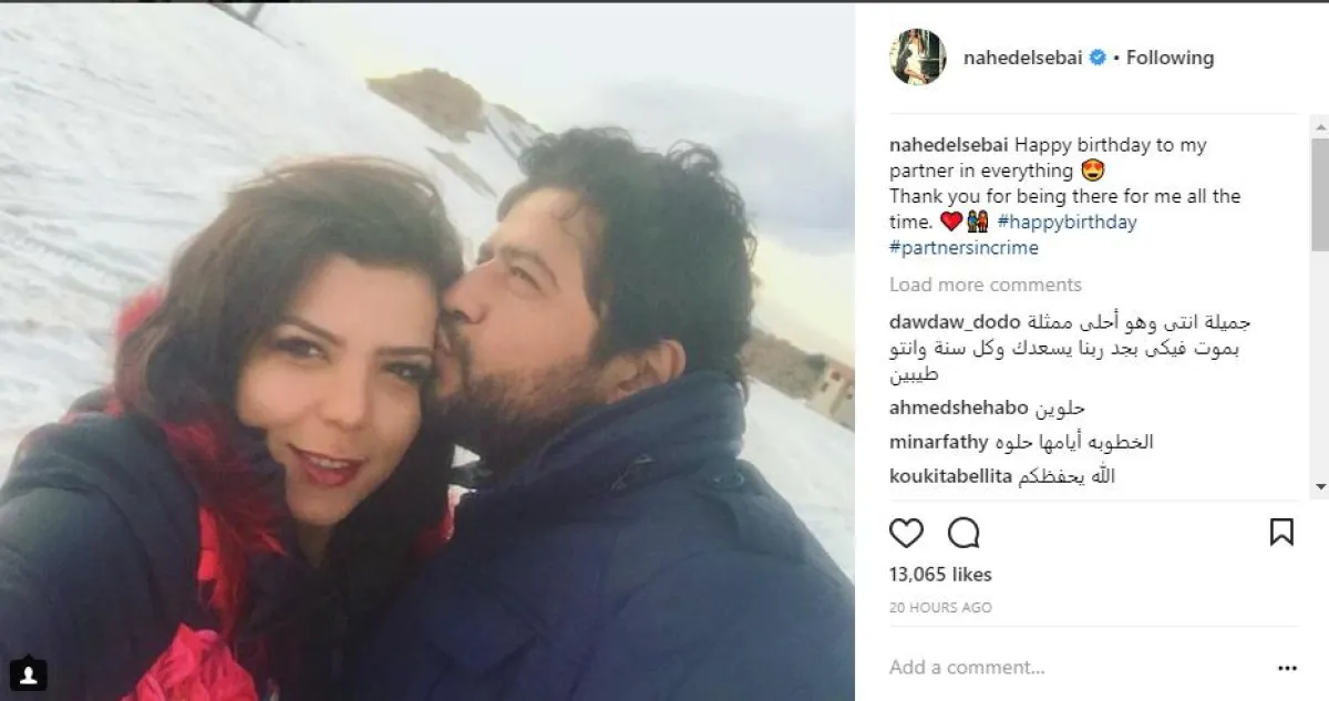 الفنانة ناهد السباعي تجاهلت الأزمة التى جرت مؤخرا، بعد نشر مقطع راقص لها بصحبة خطيبها في بيروت، ونشرت صورة تجمعهما أيضا عبر صفحتها الشخصية على موقع إنستقرام، بمناسبة عيد ميلاده، وعلقت عليها قائلة: عيد ميلاد سعيد يا شريكي في كل شيء.