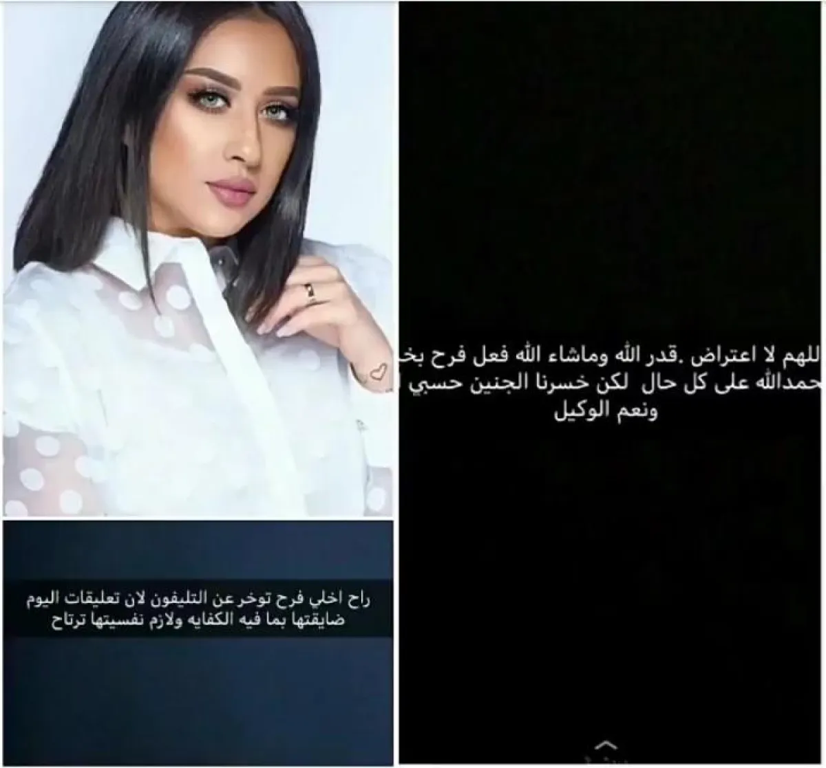 ولكن عقيل ما لبث أن نشر أنه سيبعد فرح عن الهاتف لتجنب التعليقات المسيئة. ونشر تعليقا عبر حساب فرح على سناب شات، يبدو أن عقيل هو الذي كتبه بنفسه، يشير إلى فقدان فرح لجنينها، ويقول: "اللهم لا اعتراض. قدر الله وما شاء الله فعل فرح بخير والحمد لله على كل شيء لكننا خسرنا الجنين حسبي الله ونعم الوكيل".