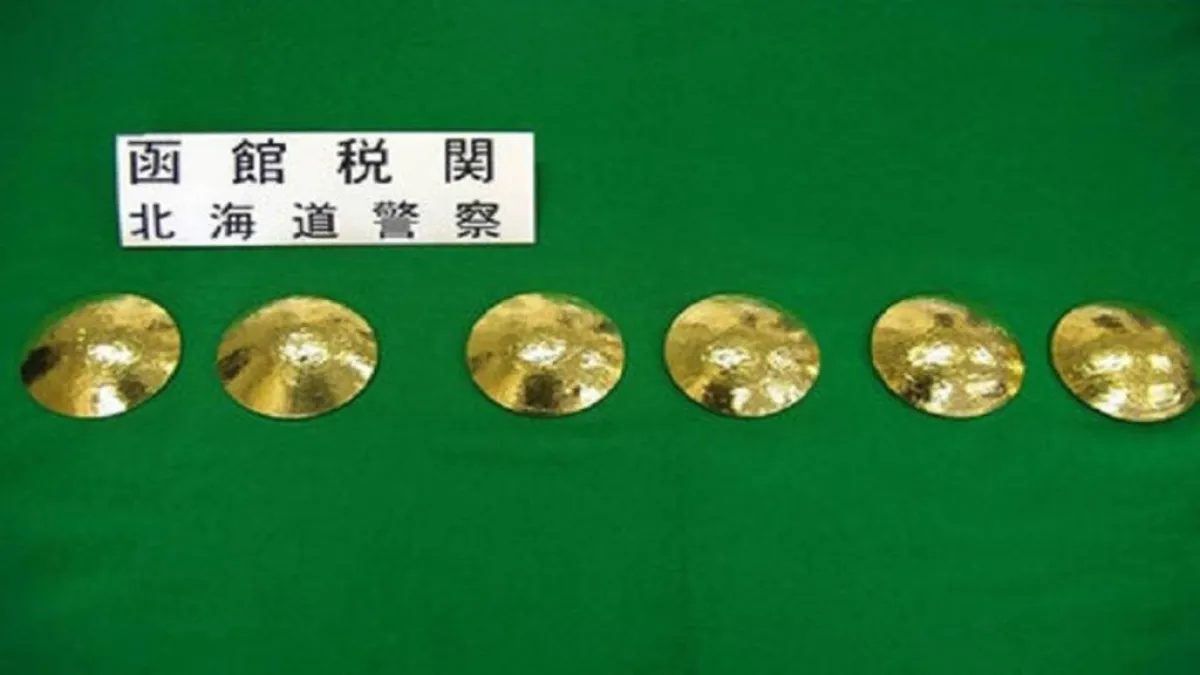 وقالت الشرطة اليابانية، وفقاً لـ«العرب اليوم»، إن كل سيدة كانت تحمل قطعتين من الذهب على شكل وعاء مخبأ في حمالة الصدر، ويبلغ قطر كل وعاء من الذهب 11 سنتيمتراً ويزن حوالي 75ر1 كيلوجراماً.